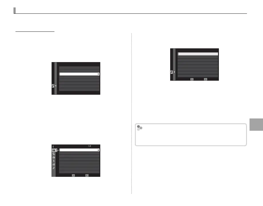 Selecting the E (MY MENU) tab displays a personalized custom menu of frequently-used options (P 107).
