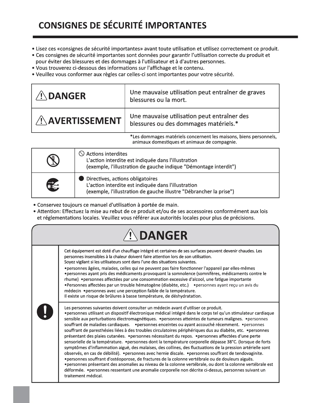 Fujiiryoki CALM PLUS MR6000 - Consignes de Sécurité Importantes