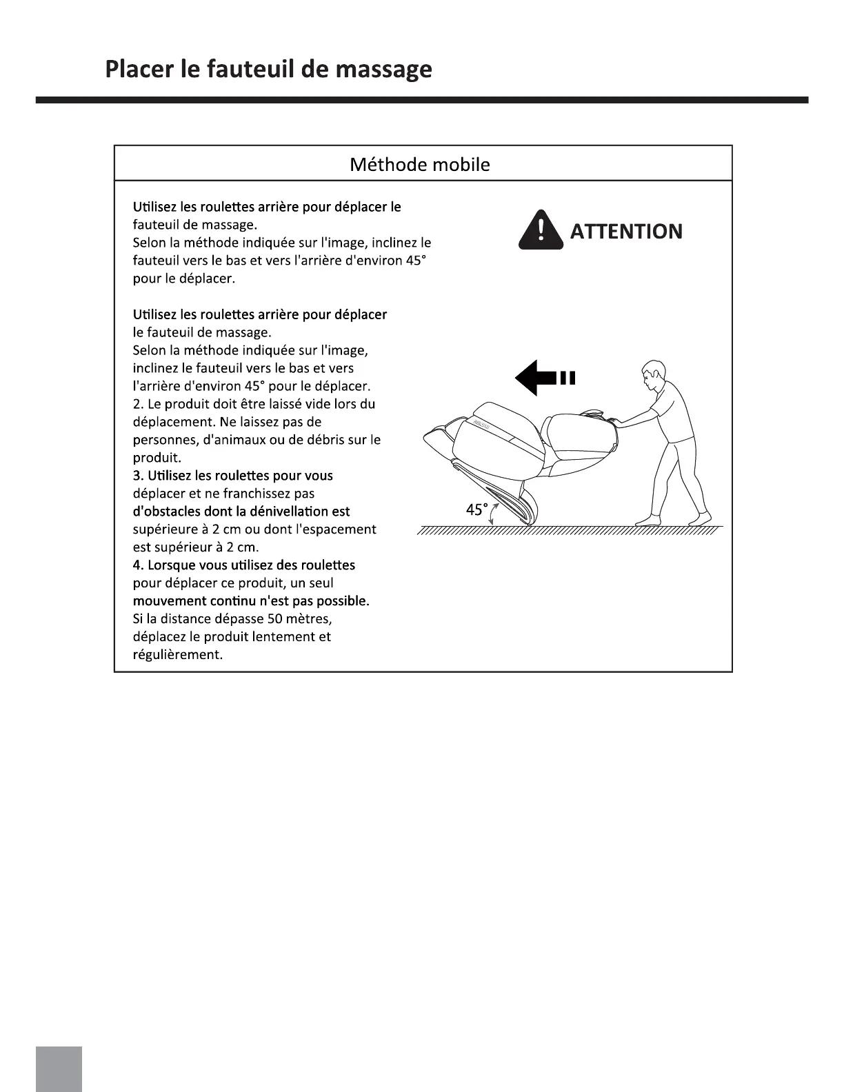fauteuil vers le bas et vers l'arrière d'environ 45°