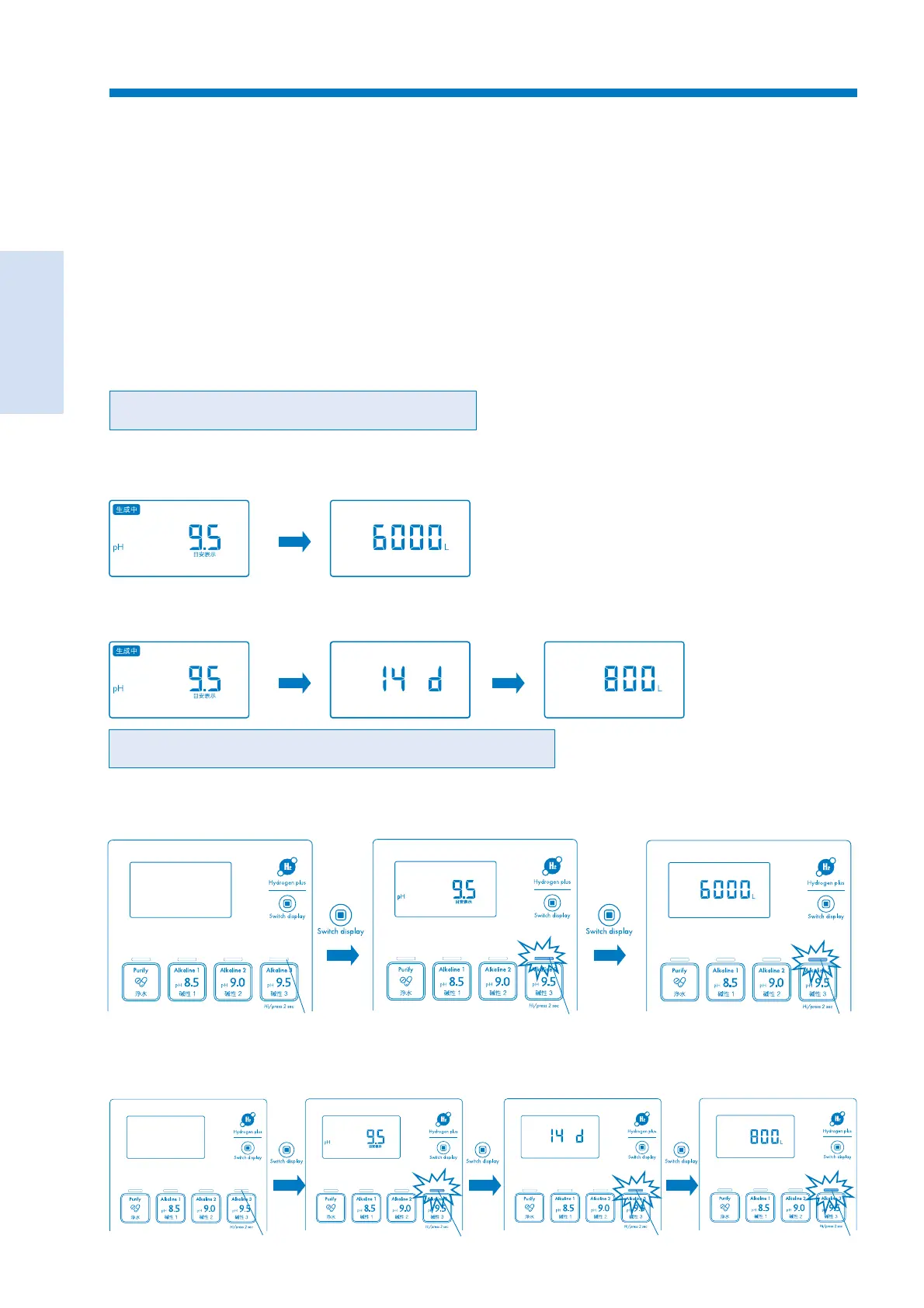 the LCD monitor contents (usable passing water amount and number of usable days).