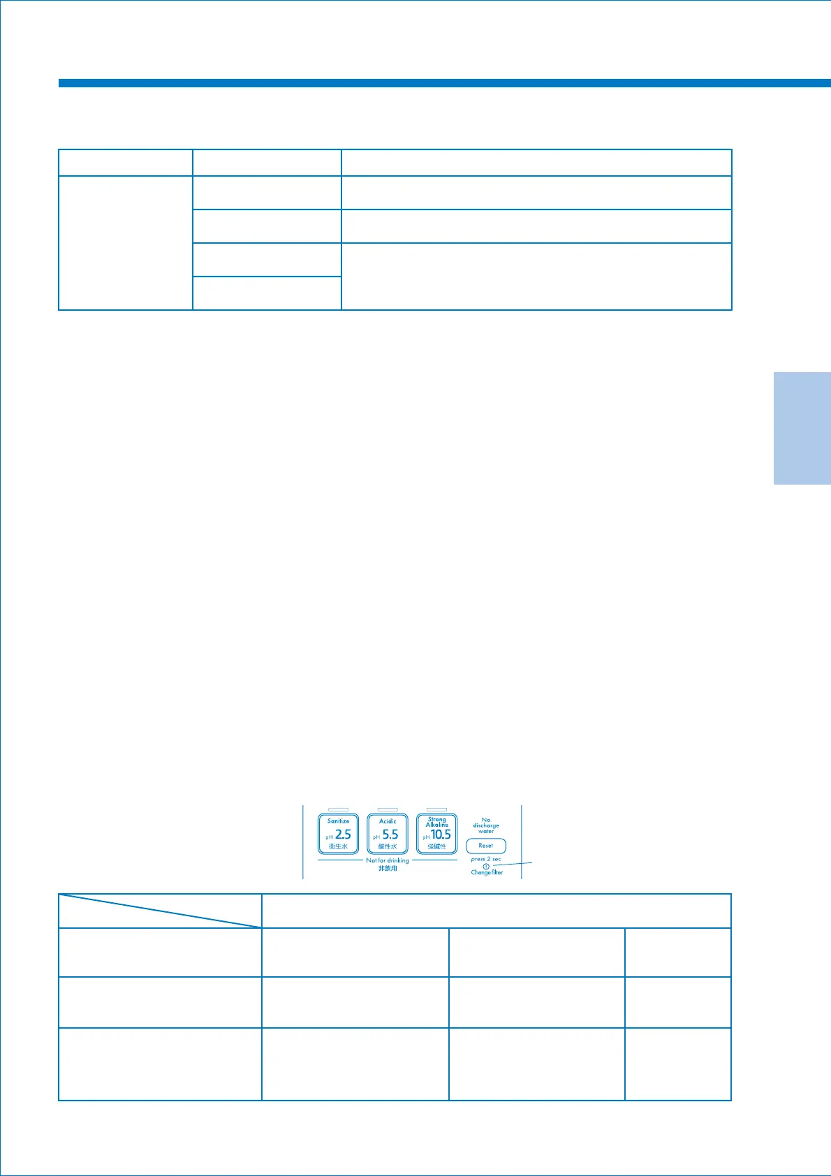 ※Pressing the “Change filter reset” button after replacement of the filter returns to the replacement