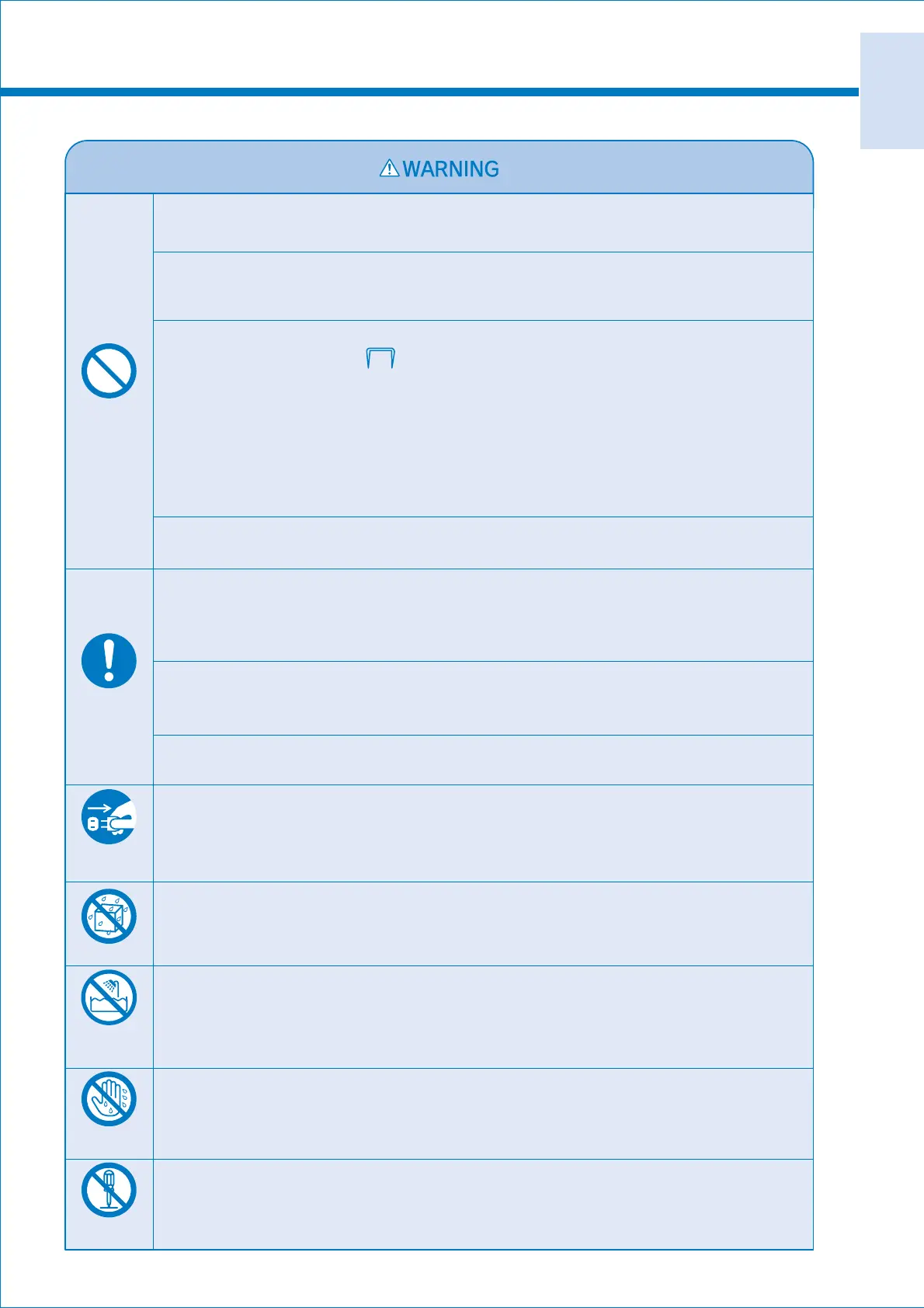 (Electric shock, short-circuit or ignition may result.)
