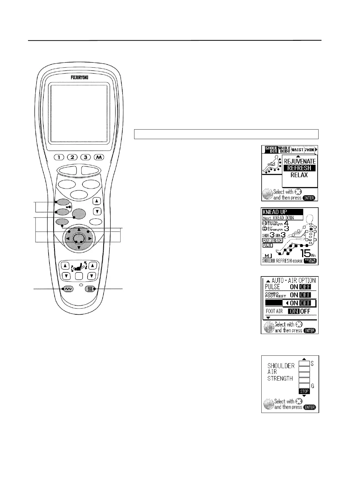 massaging with AUTO COURSE or in QUICK MODE