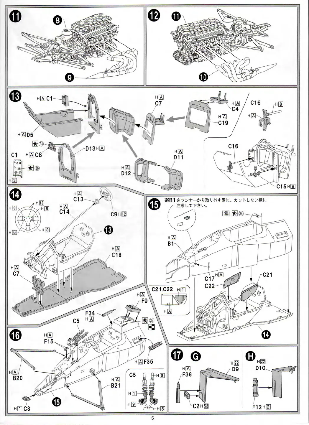 Fujimi 09044 - Assembly Steps 11-15; Assembly Step 11; Assembly Step 12; Assembly Step 13