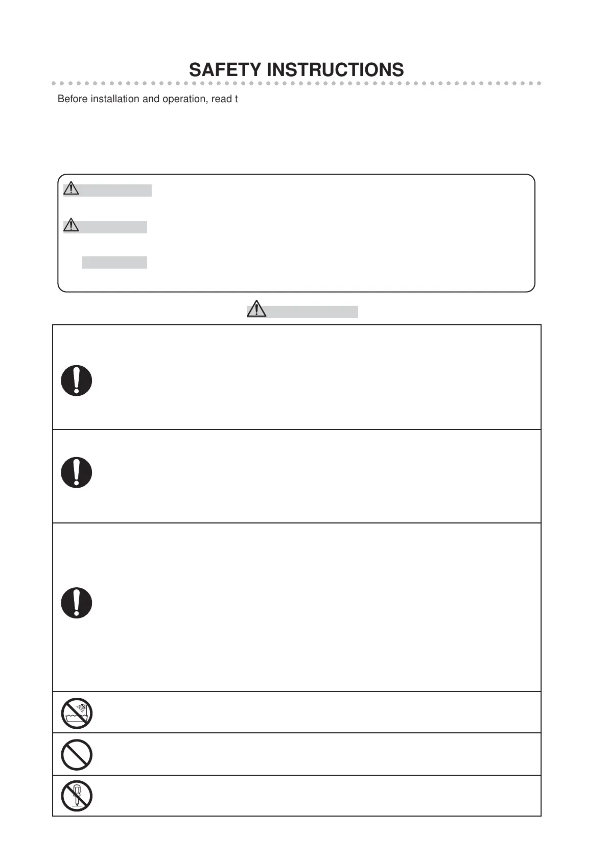 otherwise it may result in fire, electric shock, or injury.
