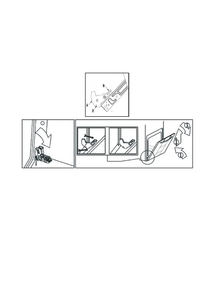 To replace the door, ensure the seat D is hooked perfectly onto the