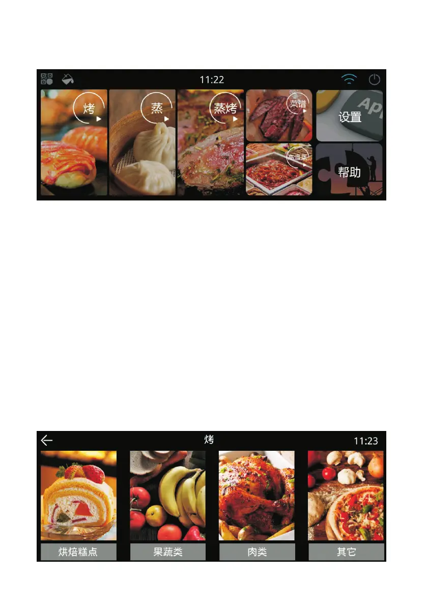 1. 插上电源后,触点显示屏开启蒸烤箱