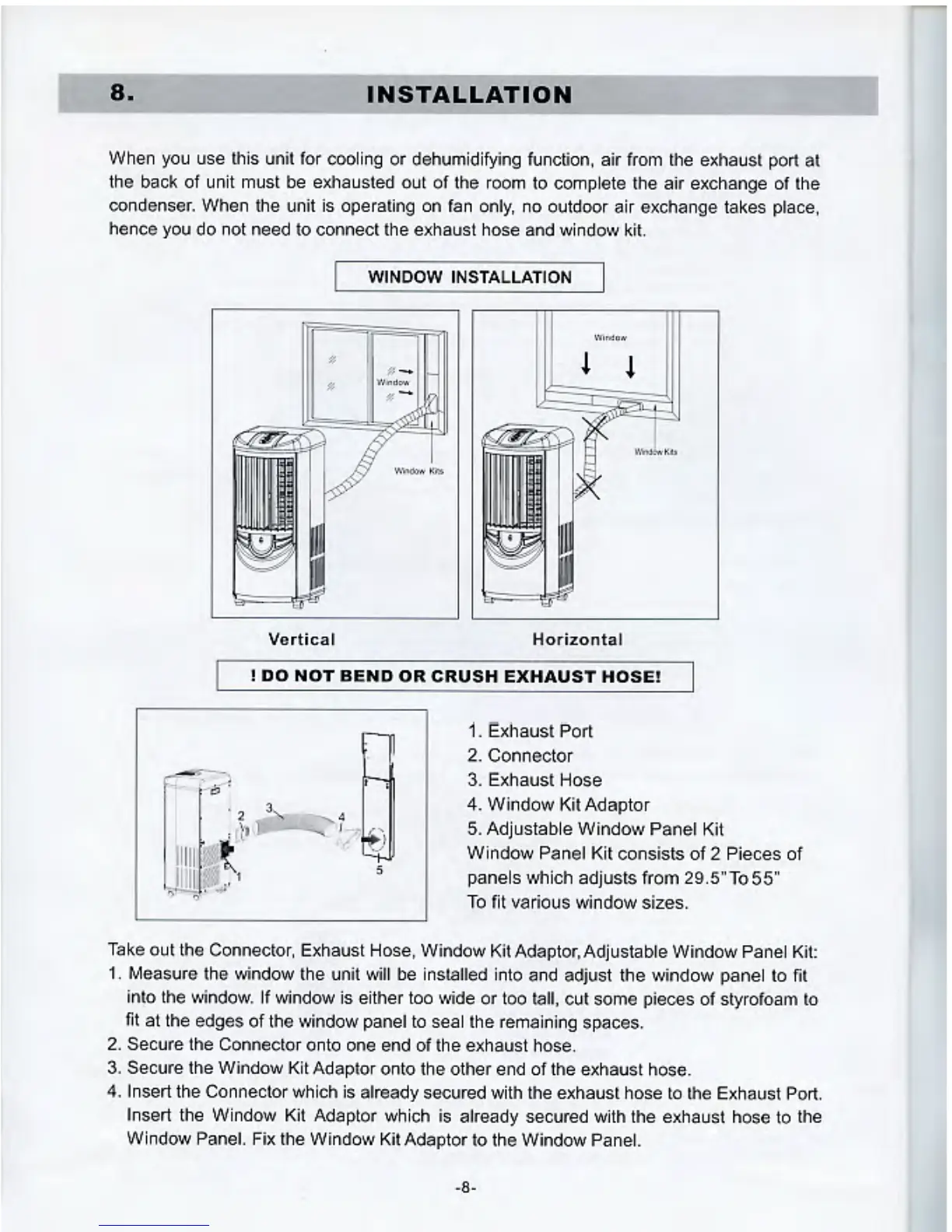 Fujitronic FA-9000 - Installation Guide; Window Installation Methods; Exhaust Hose Assembly