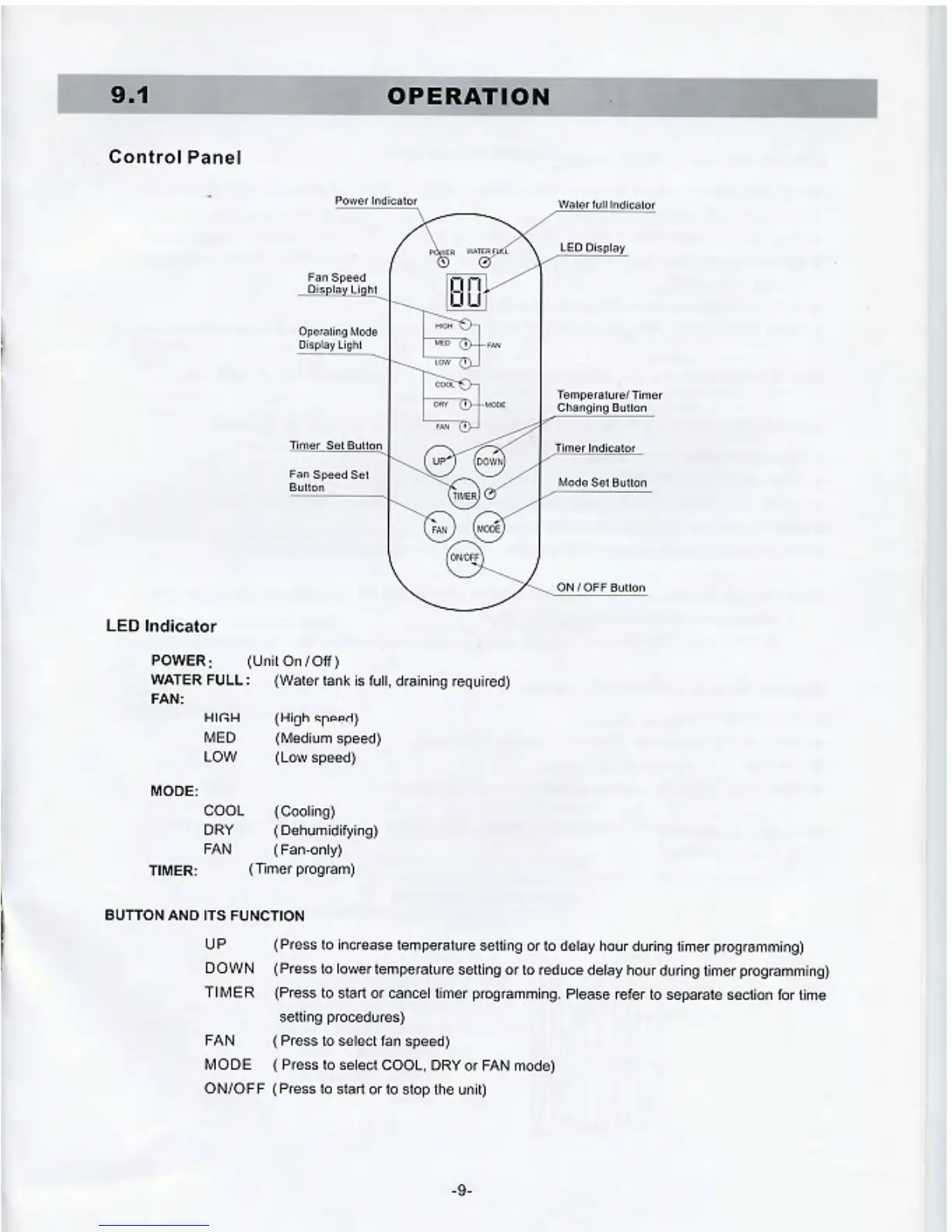 Fujitronic FA-9000 - Operation - Control Panel; LED Indicators and Display; Button Functions