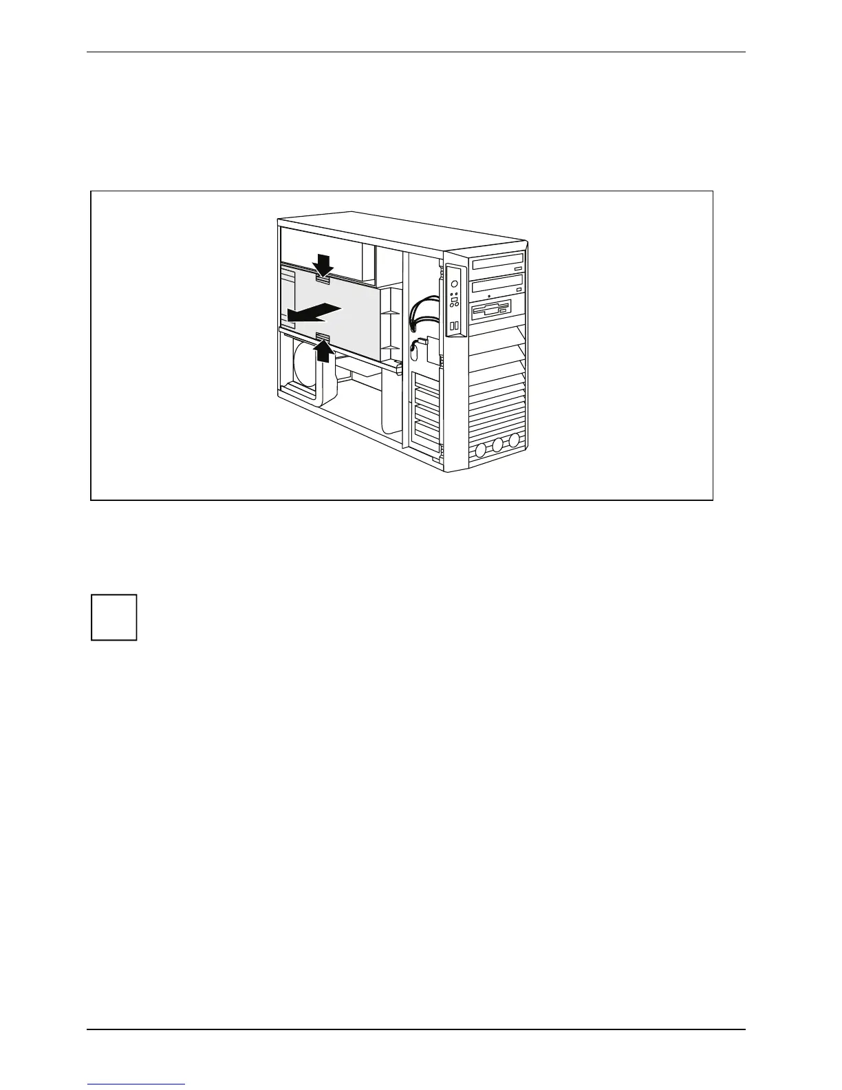 ► Release the ventilation duct by pressing the locking hooks in the direction of the arrow (1).