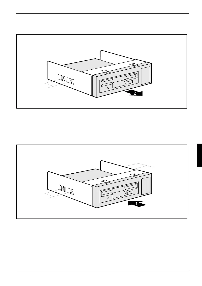 ► Fasten the floppy disk drive with the screws (2) on both sides of the slide-in module.