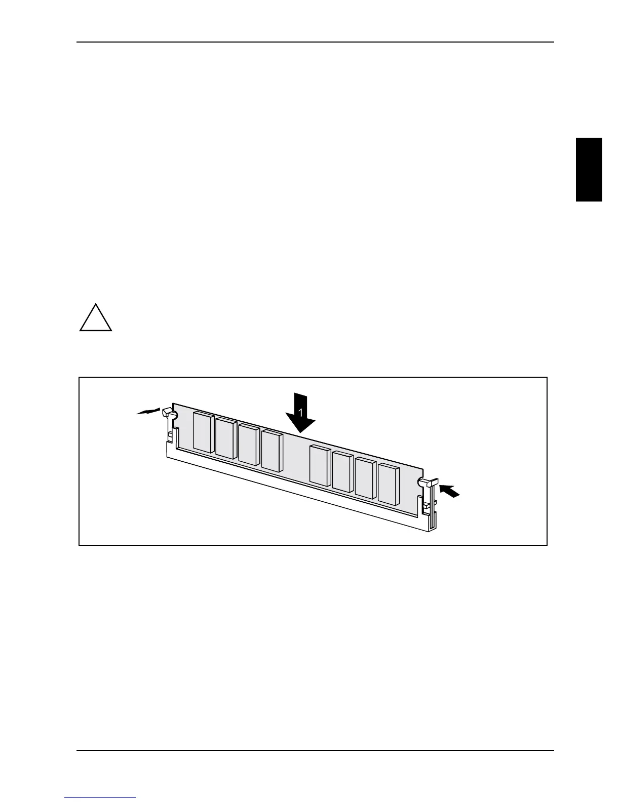 Ê At the same time flip the lateral holders upwards until the memory module snaps in place (2).