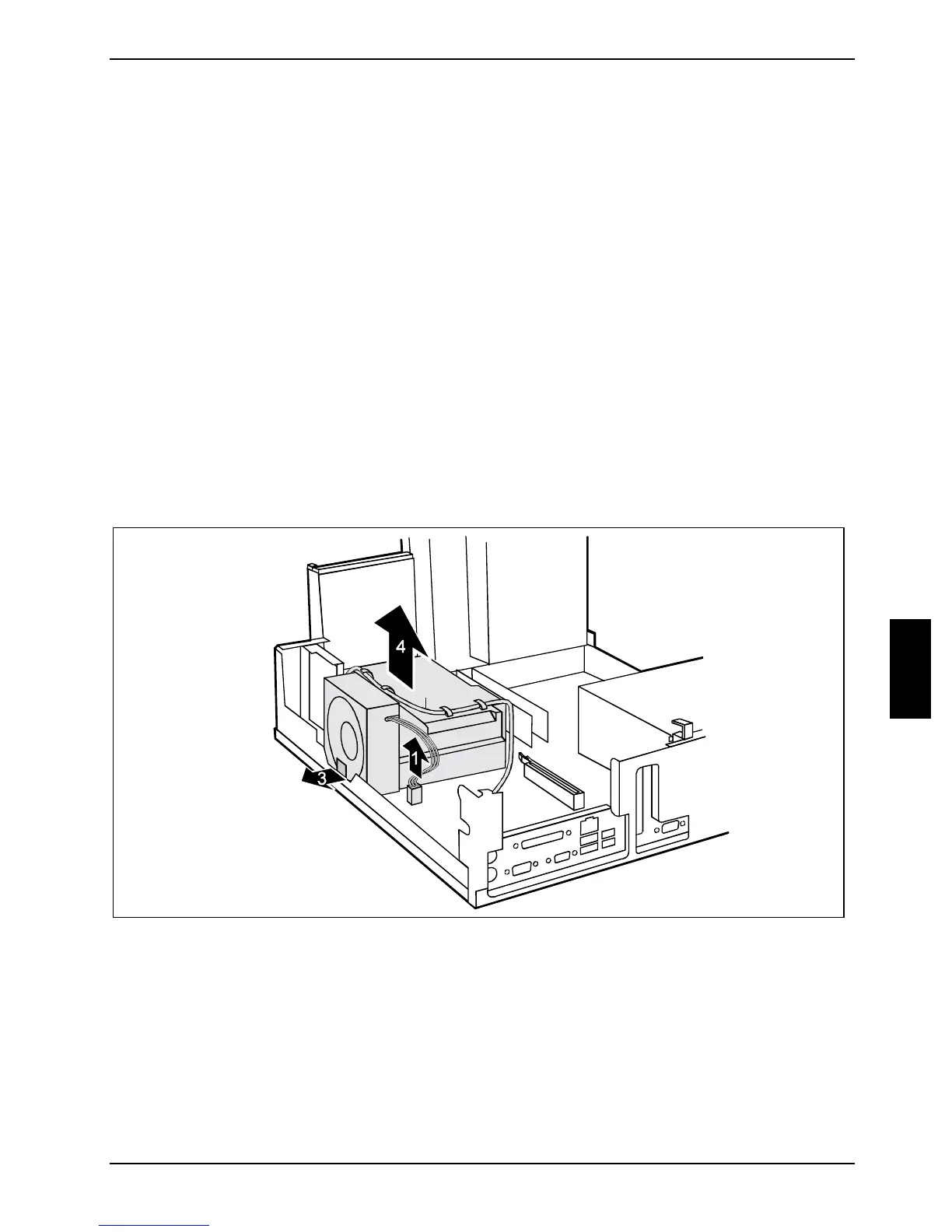 ► Pull the locking lug on the fan in the direction of the arrow (3).