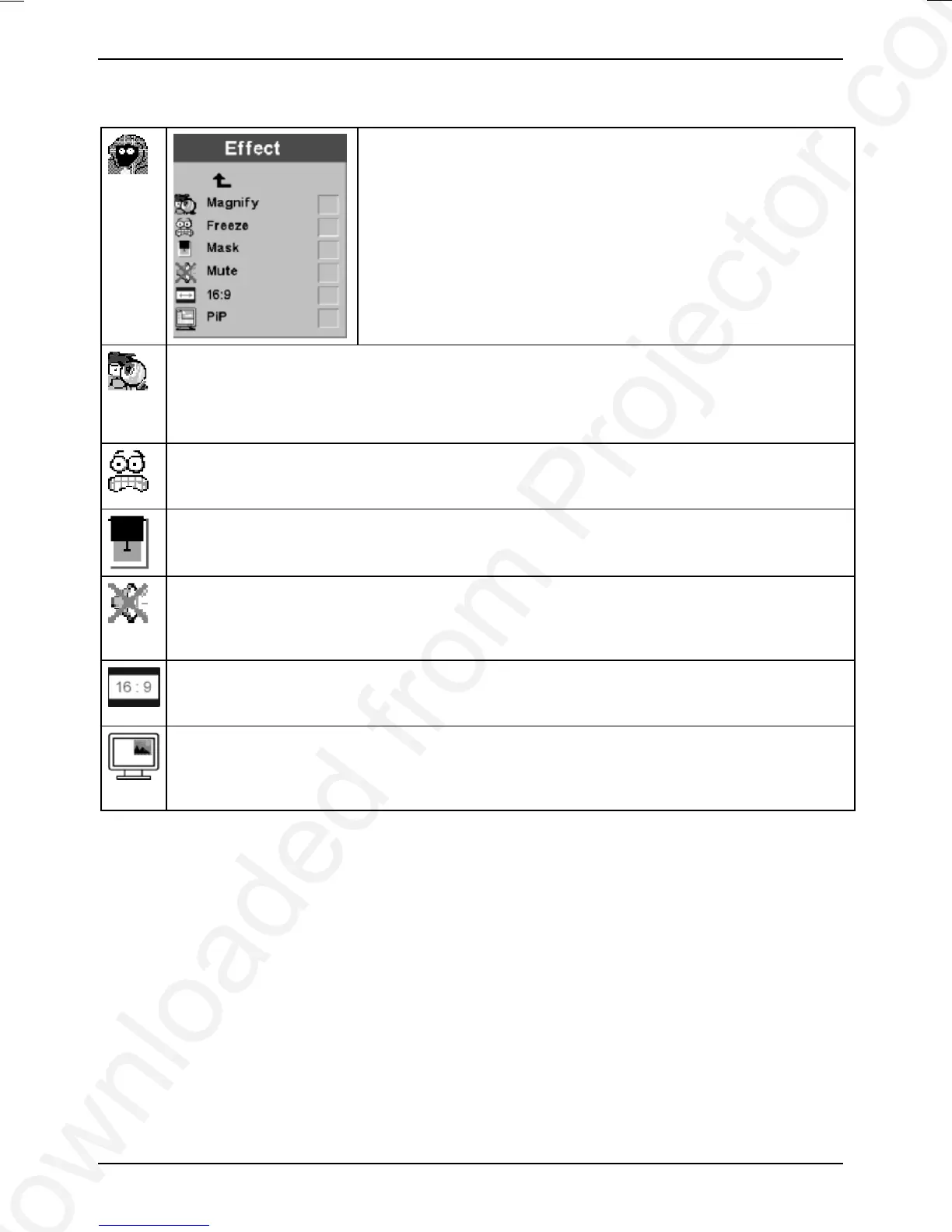 to the "Effect" button on the remote control. You can select only