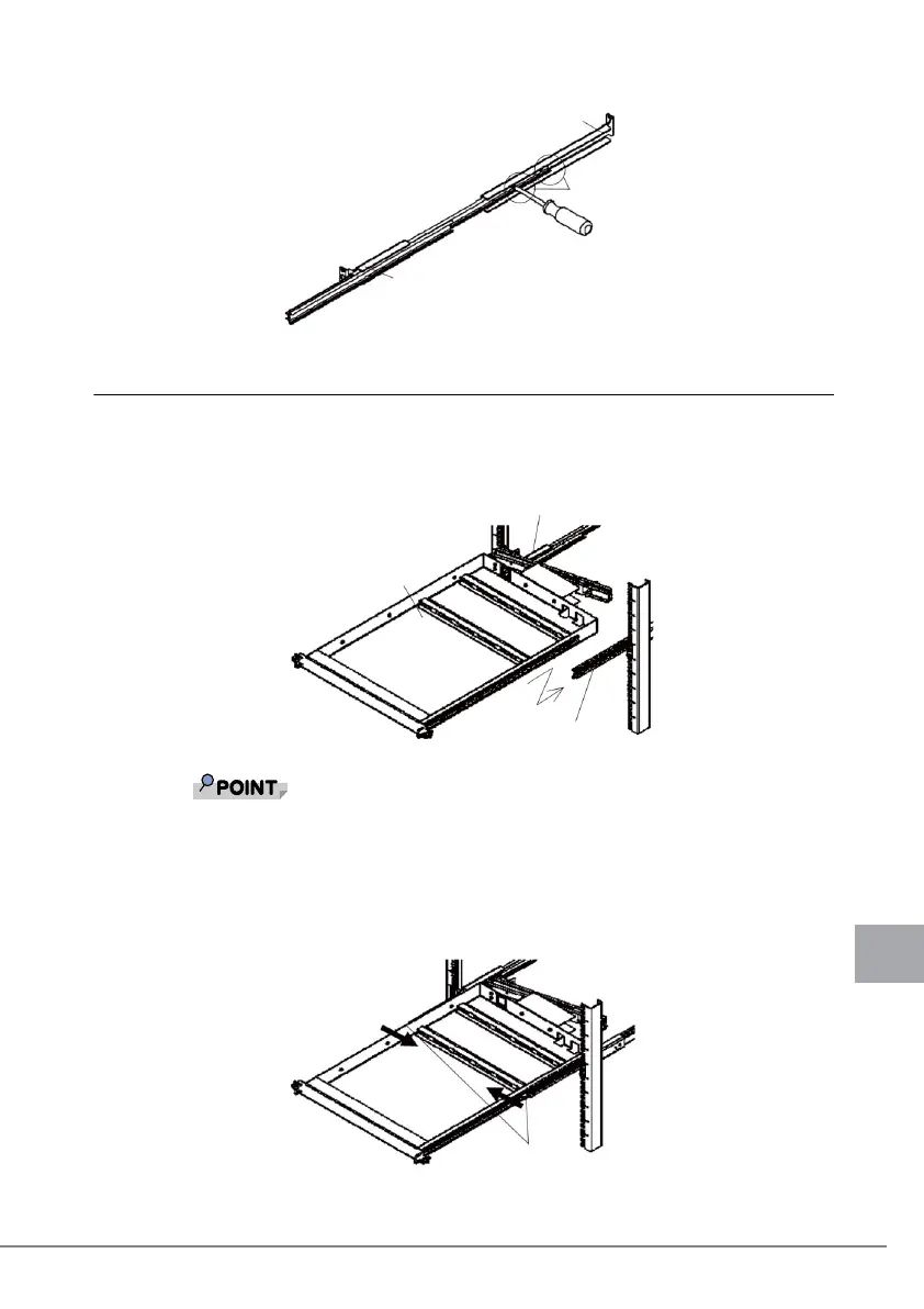 テーブルユニットをレールユニットに挿入してラックに収納し、固定します。