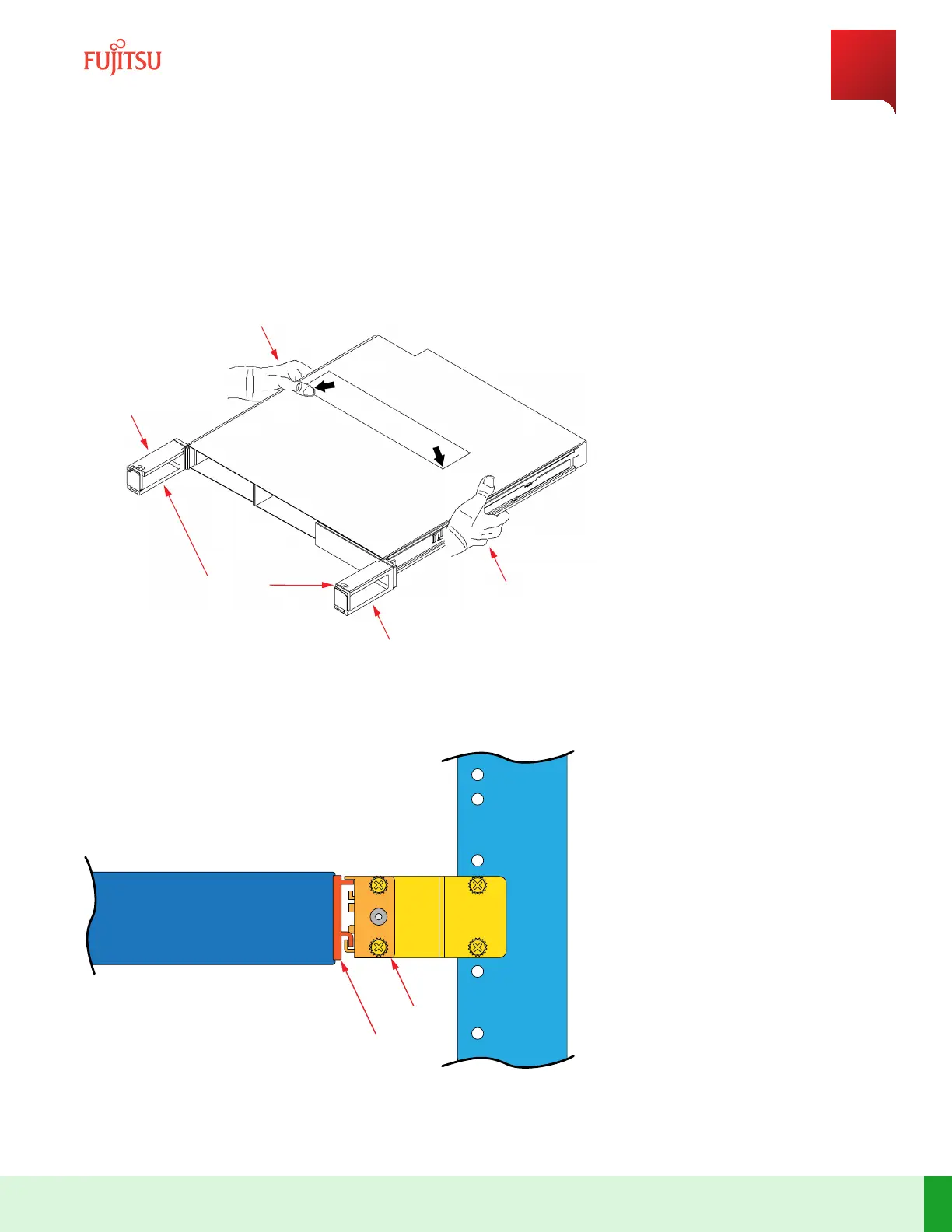 Note: Fujitsu recommends installing the blade without the PIUs installed.