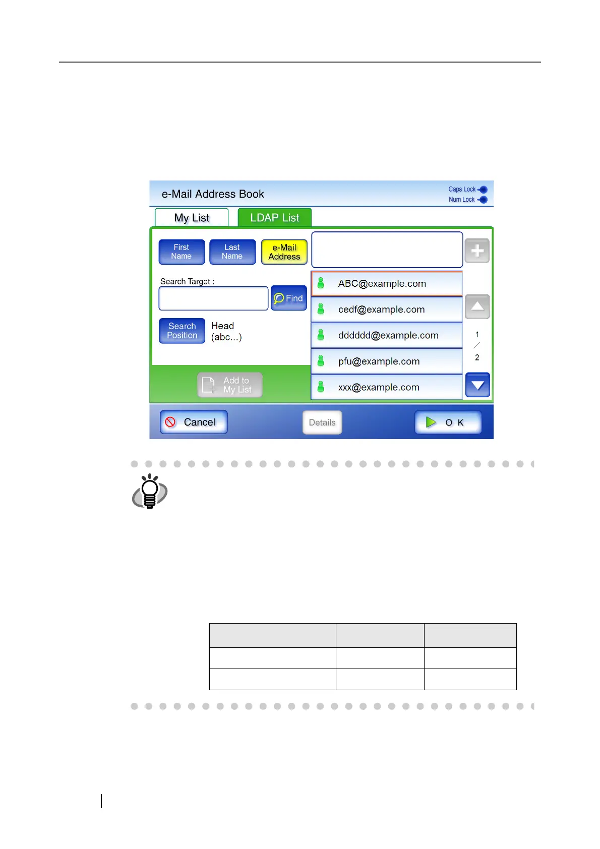 z Search methods differ for the My List and LDAP List. Therefore, search
