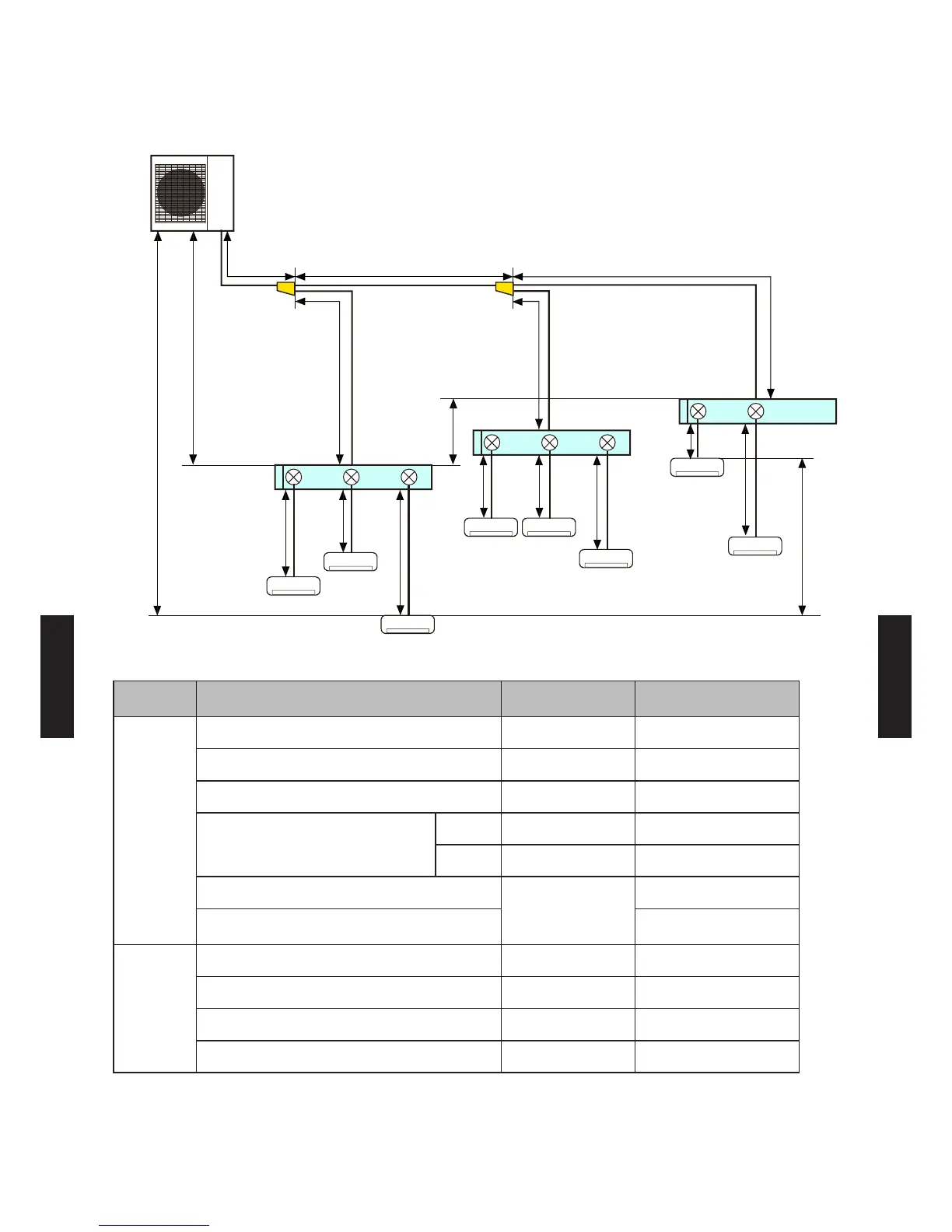Between outdoor unit and the farthest indoor unit 70 or less a + b + c + m