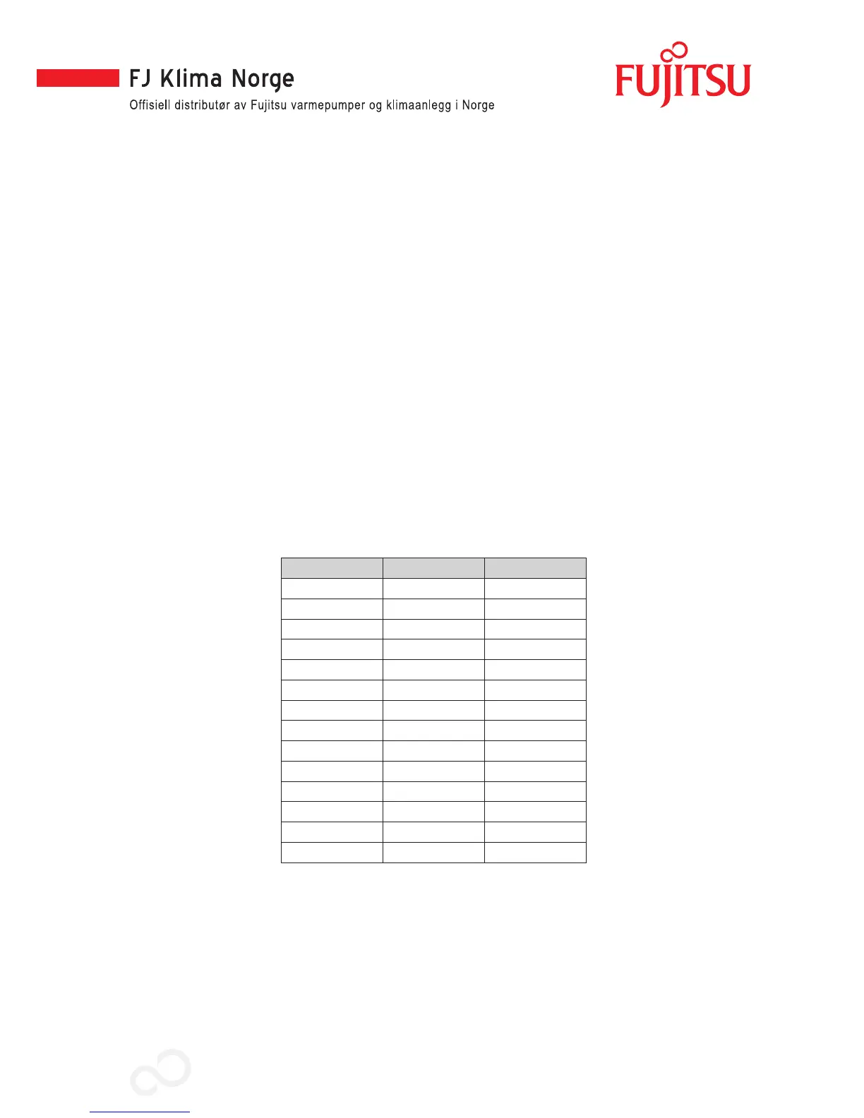Distributor of Fujitsu Air Conditioners in Norway: FJ KLIMA NORGE Postboks 237 Tiller, 7477 Trondheim, Tlf: 72 88 86 64 www.fjklima.no