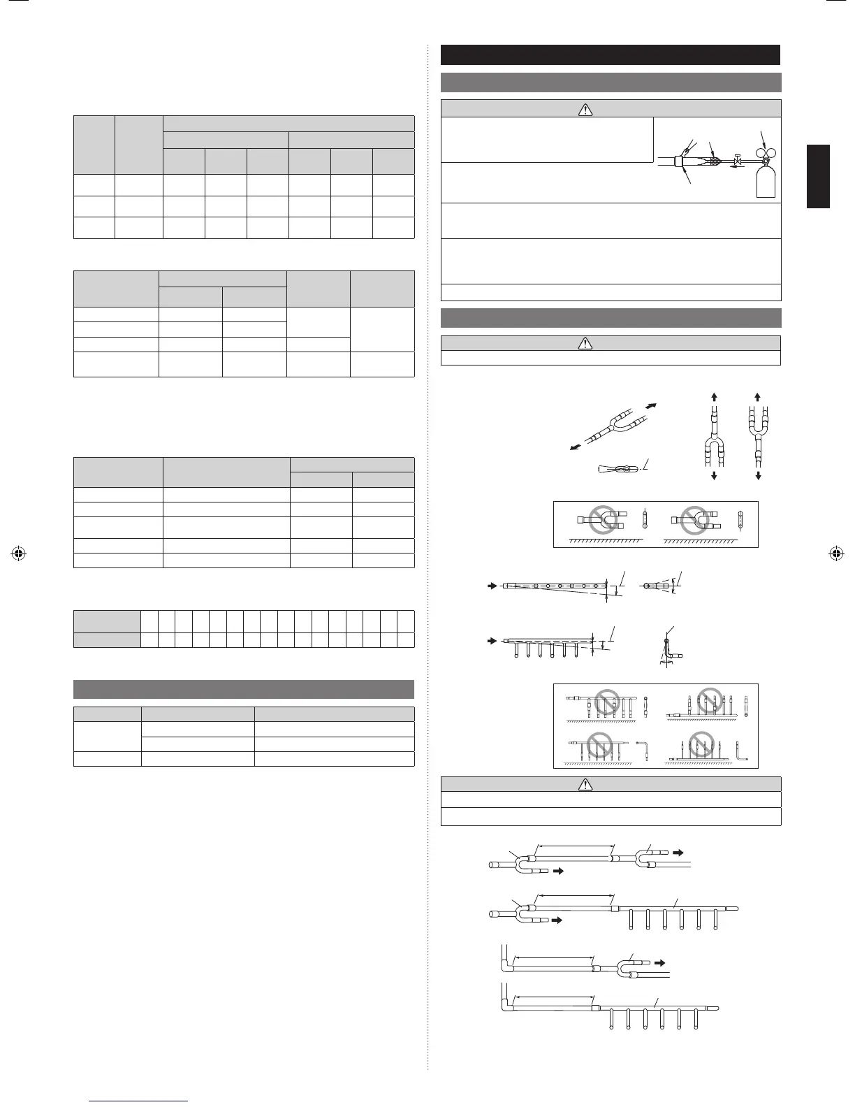 • Condition 2: Between outdoor unit and first separation tube or header ˃ 70 m