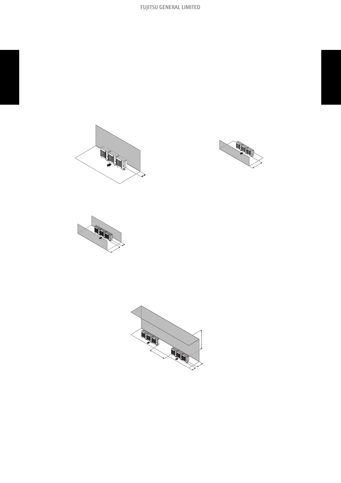 • Provide at least of space between the outdoor units if multiple units are installed.