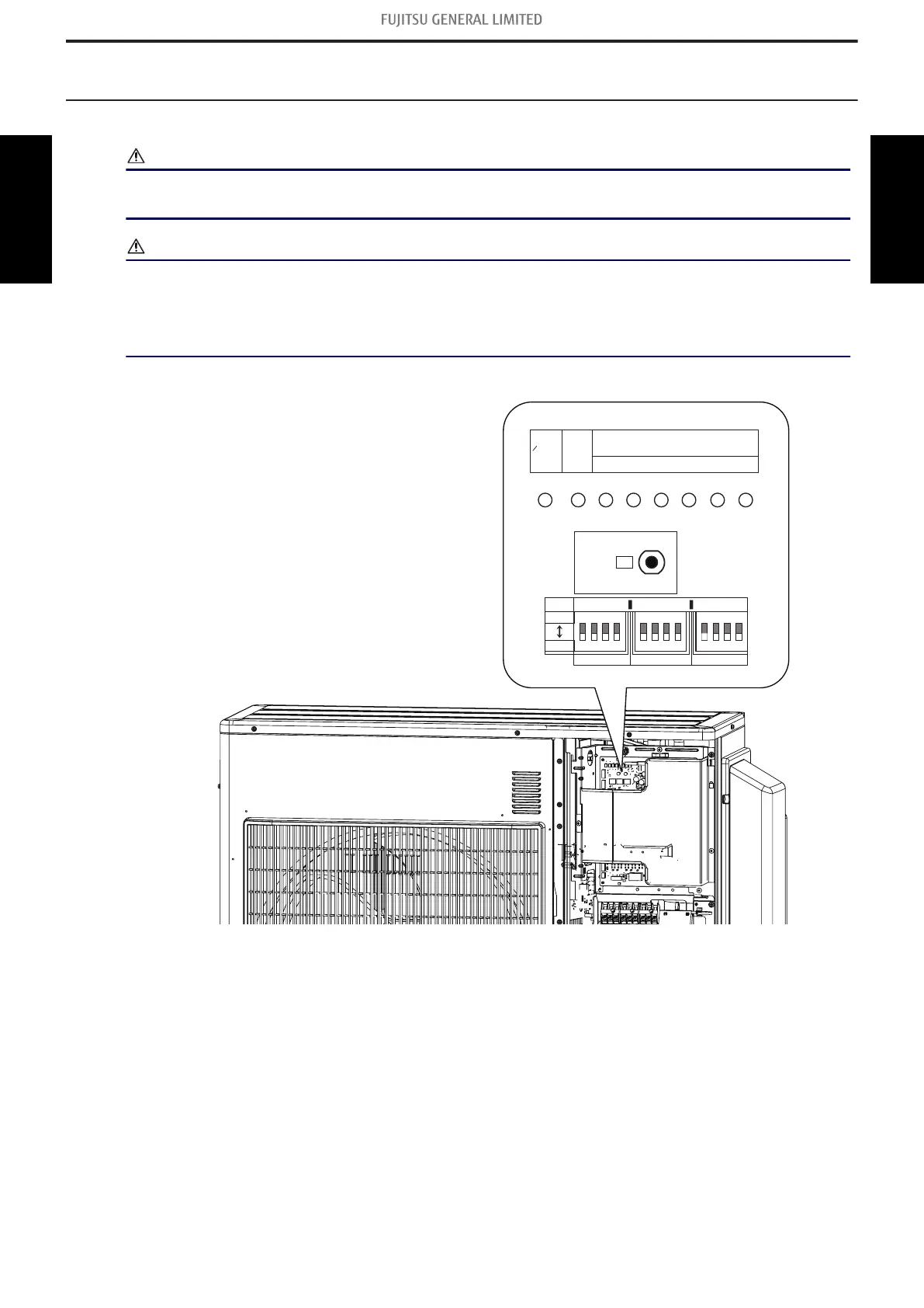 The positions of the switches on the outdoor unit control board are shown in the figure below.