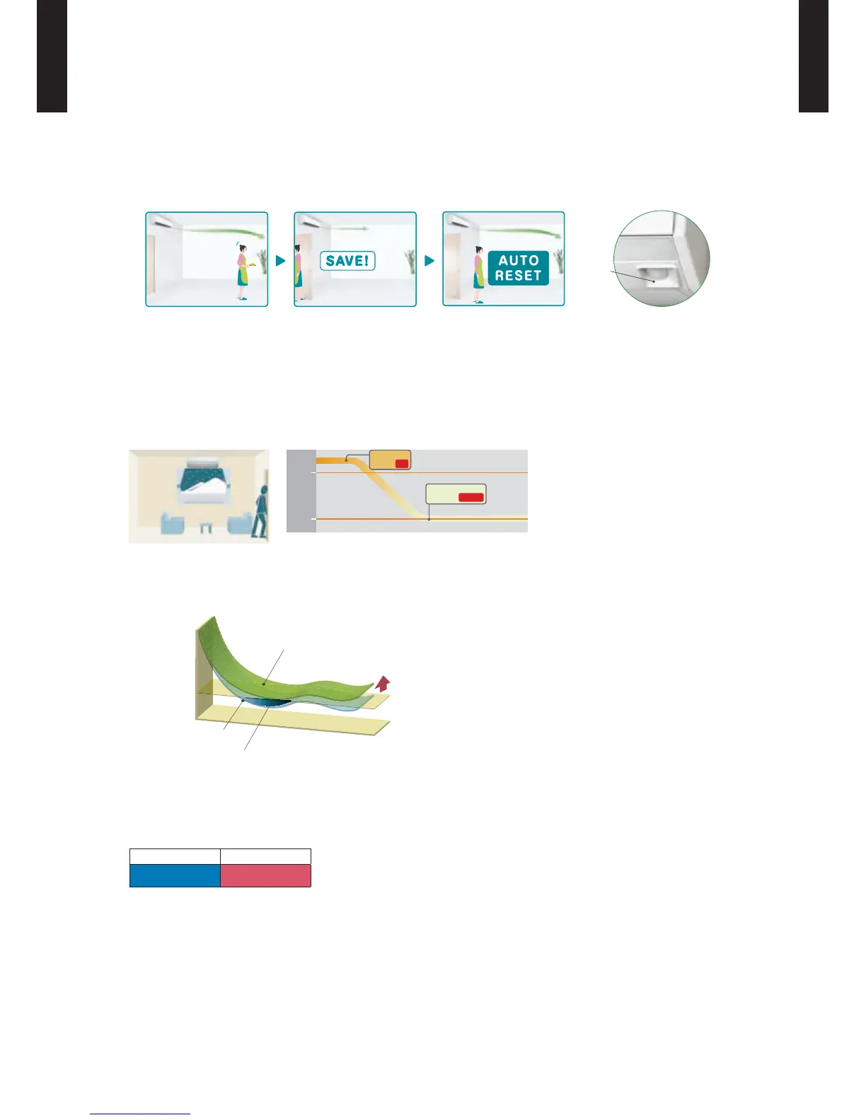 When the room temperature is higher than 10 °C, “• 10°C HEAT” operation will not start. Operation starts and maintains the room