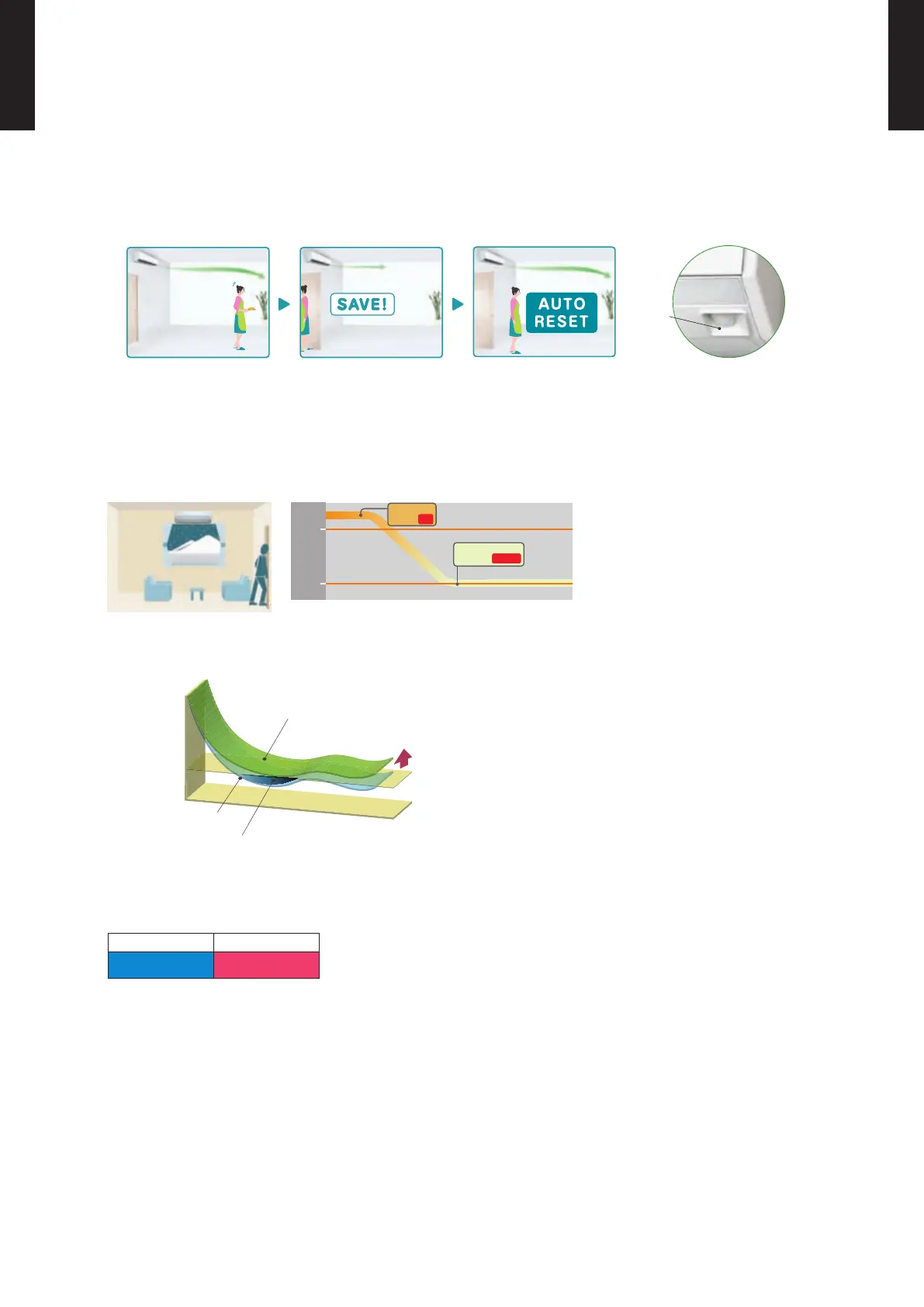 When the room temperature is higher than 10 °C, “ • 10°C HEAT” operation will not start. Operation starts and maintains the room