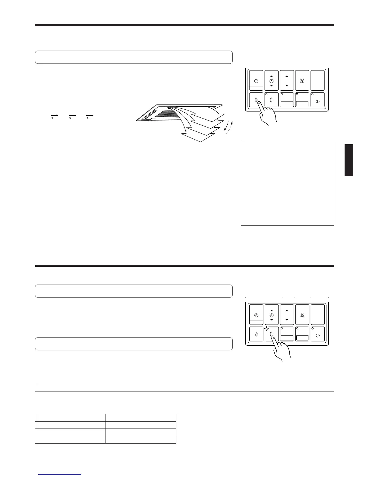 Each time the button is pressed, the air flow direction range will change as fol-