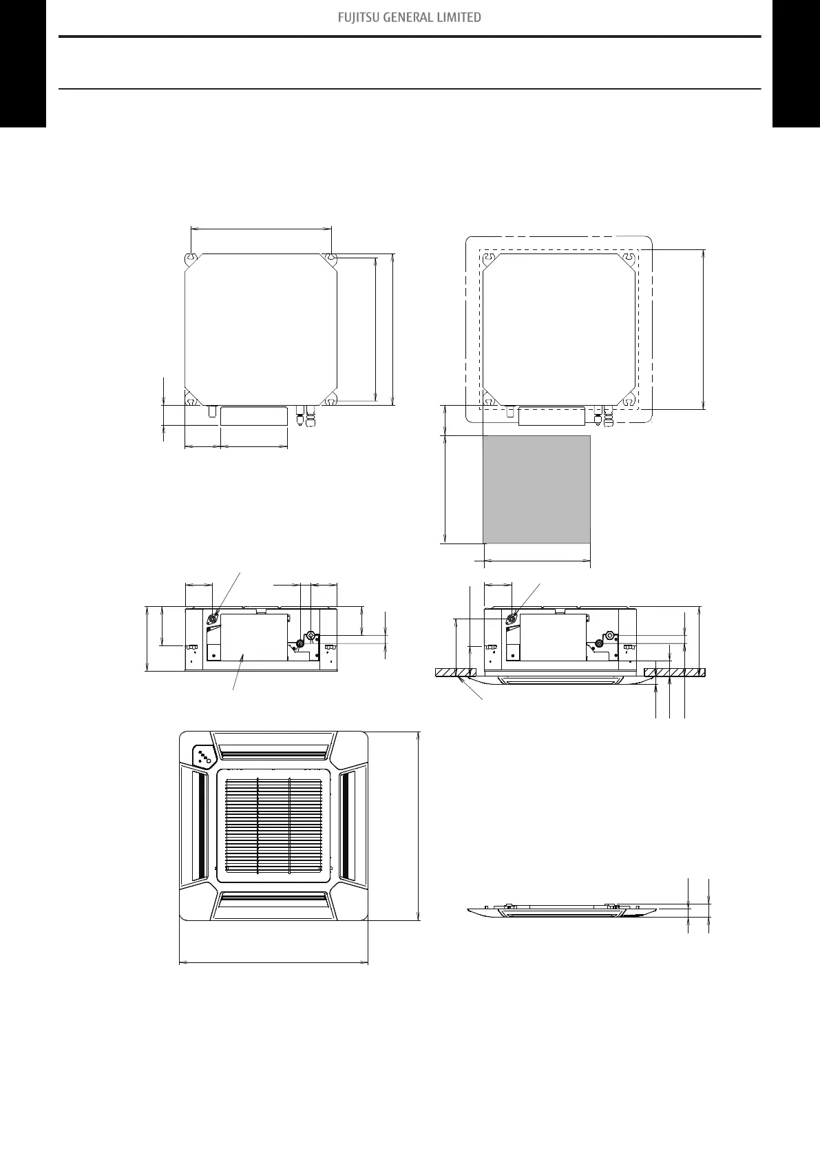 Fujitsu AOYG72LRLA - 3. Dimensions; 3-1. Compact cassette type; Models: AUYG18 LVLB, AUYG22 LVLA, and AUYG24 LVLA