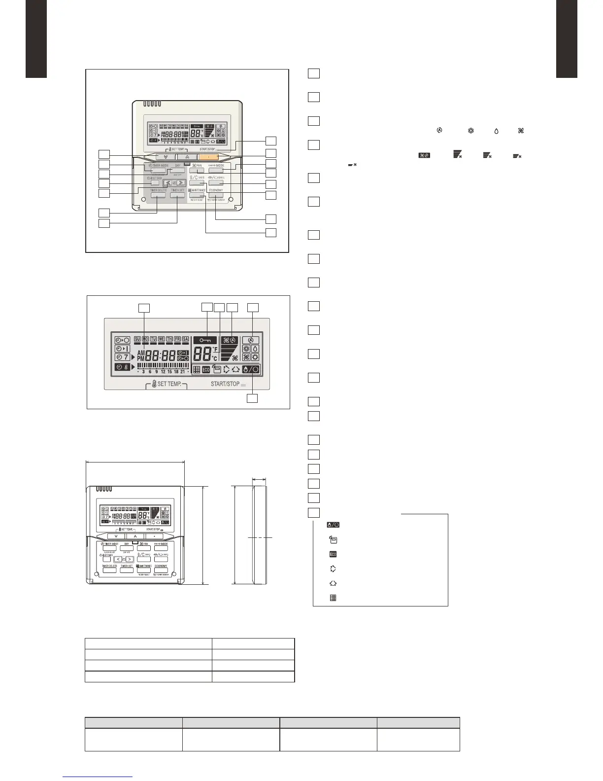 Selects the operating mode (AUTO , COOL , DRY , FAN ).