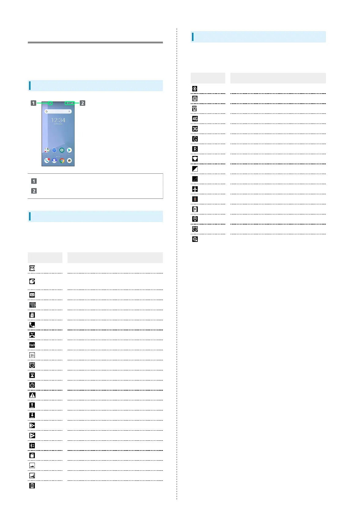 Indicators for new mail, etc. and Status Indicators for handset