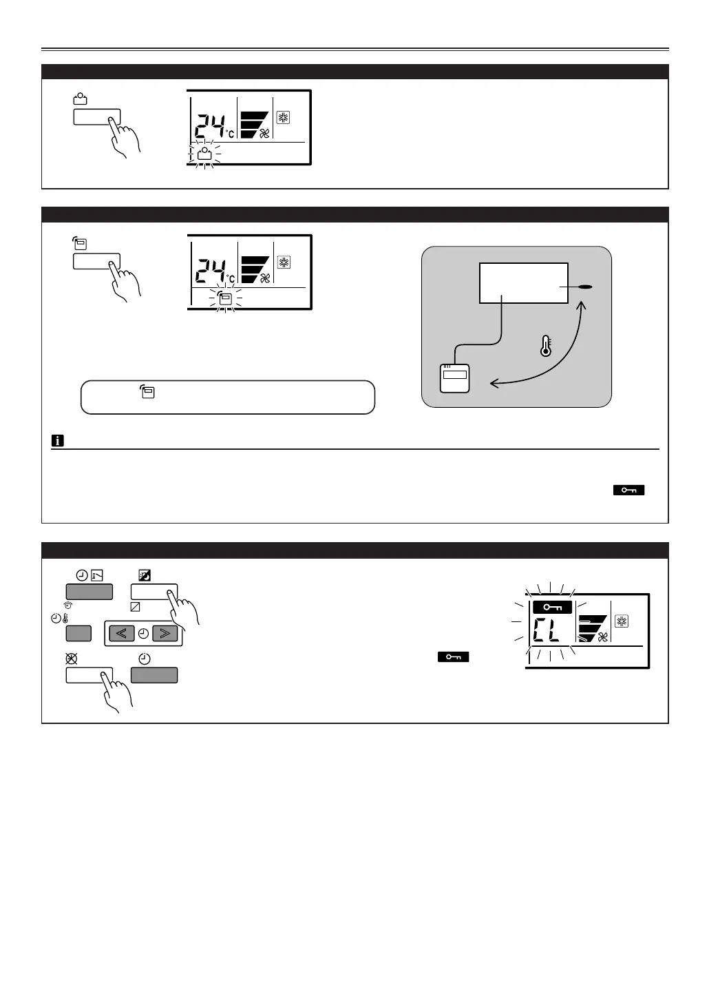 • This function is locked at the factory. In order to detect the room temperature correctly, consult authorized service