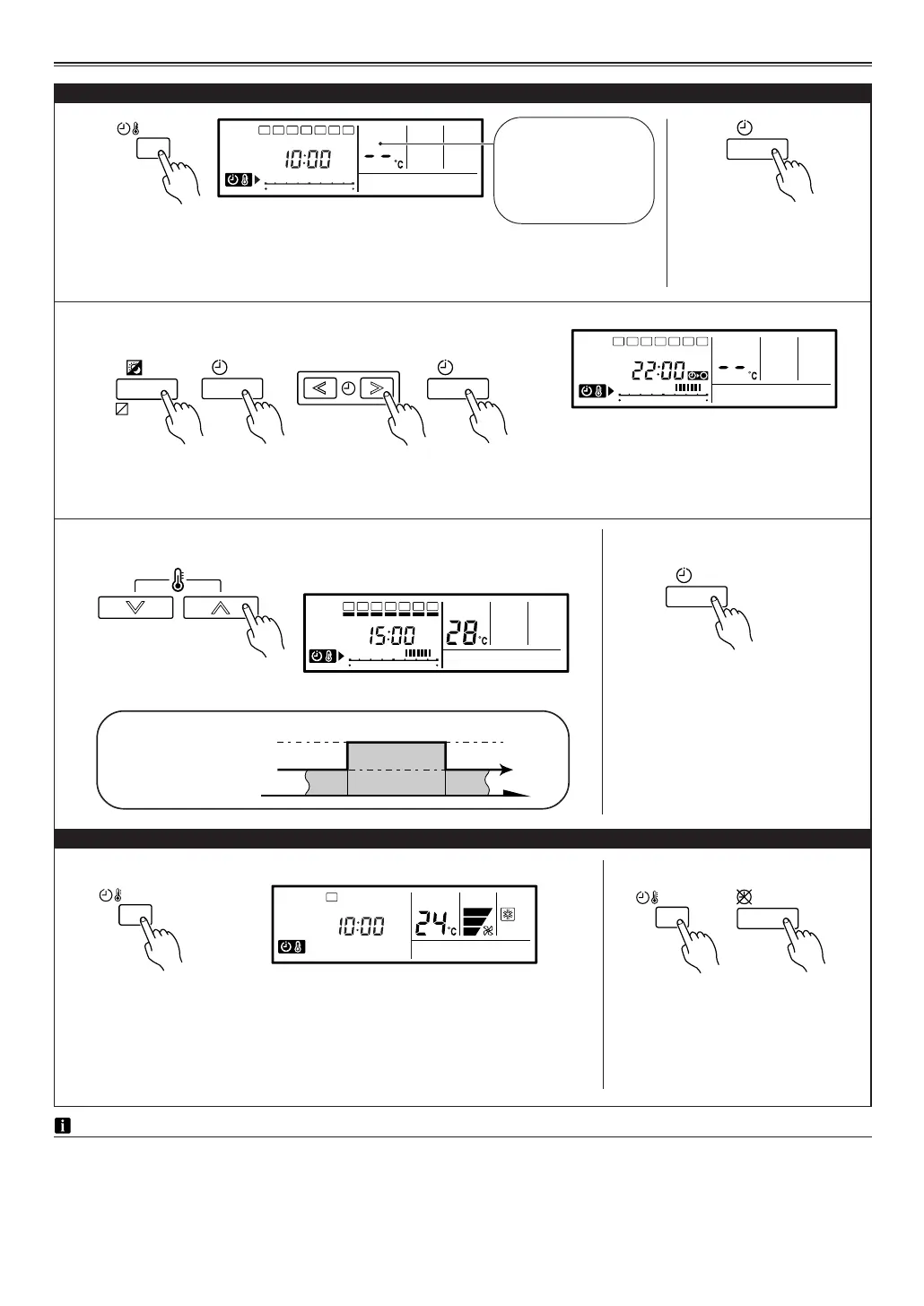 • The SET BACK timer can be used together with the ON, OFF, and weekly timer functions.