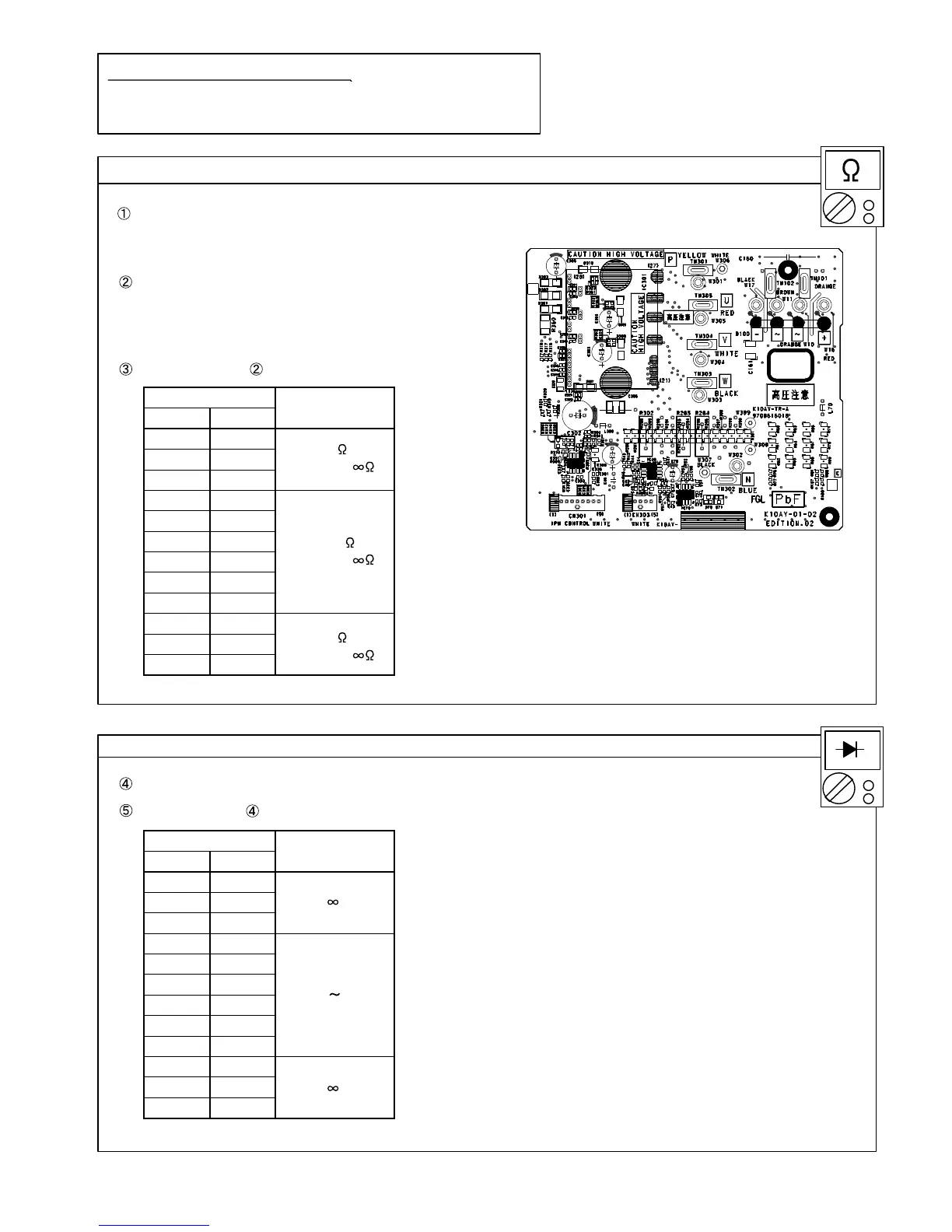 Set the tester to the "Diode" mode, and measure the voltage value between the following terminals.