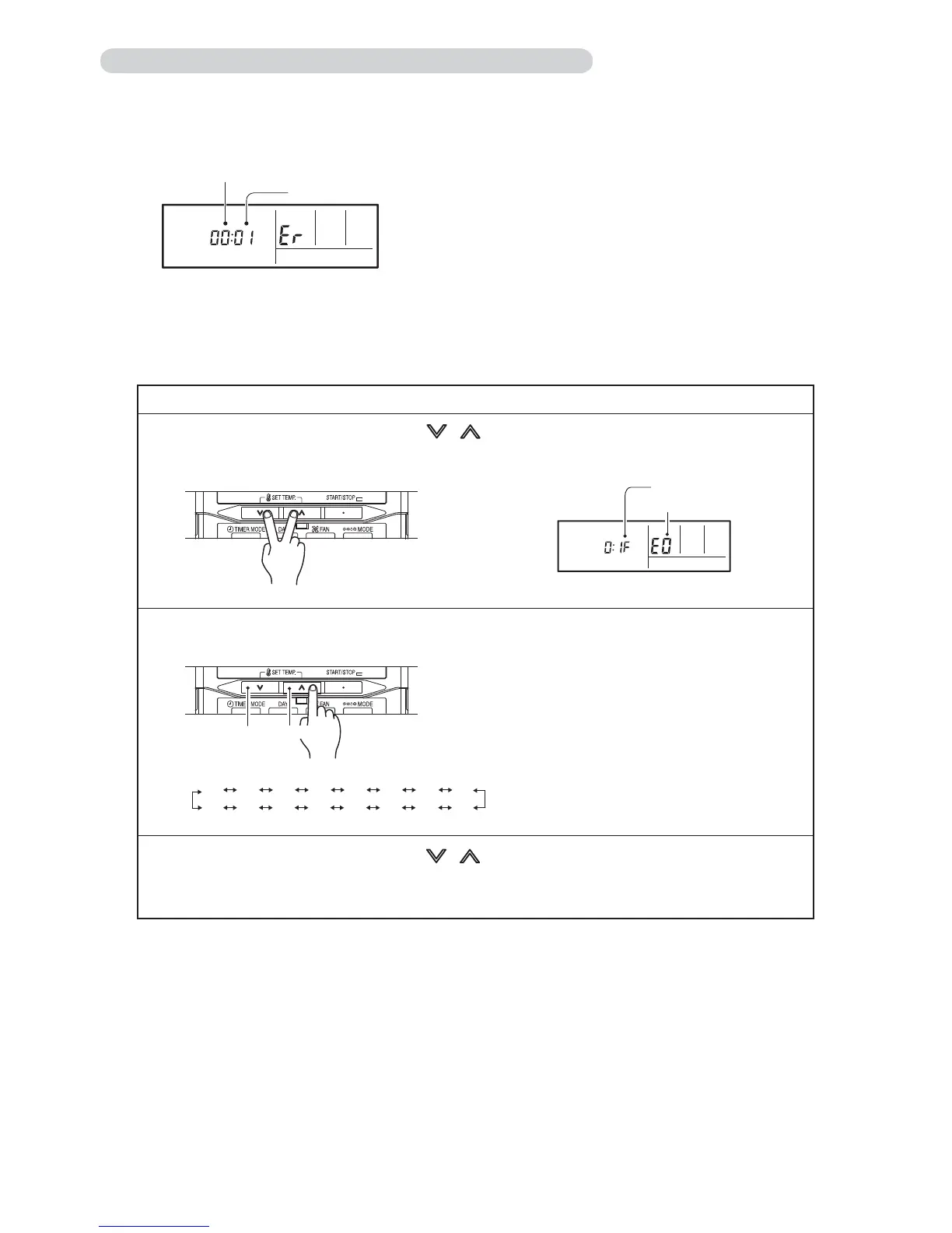 Up to 16 memorized error codes may be displayed for the indoor unit connected to the remote controller.