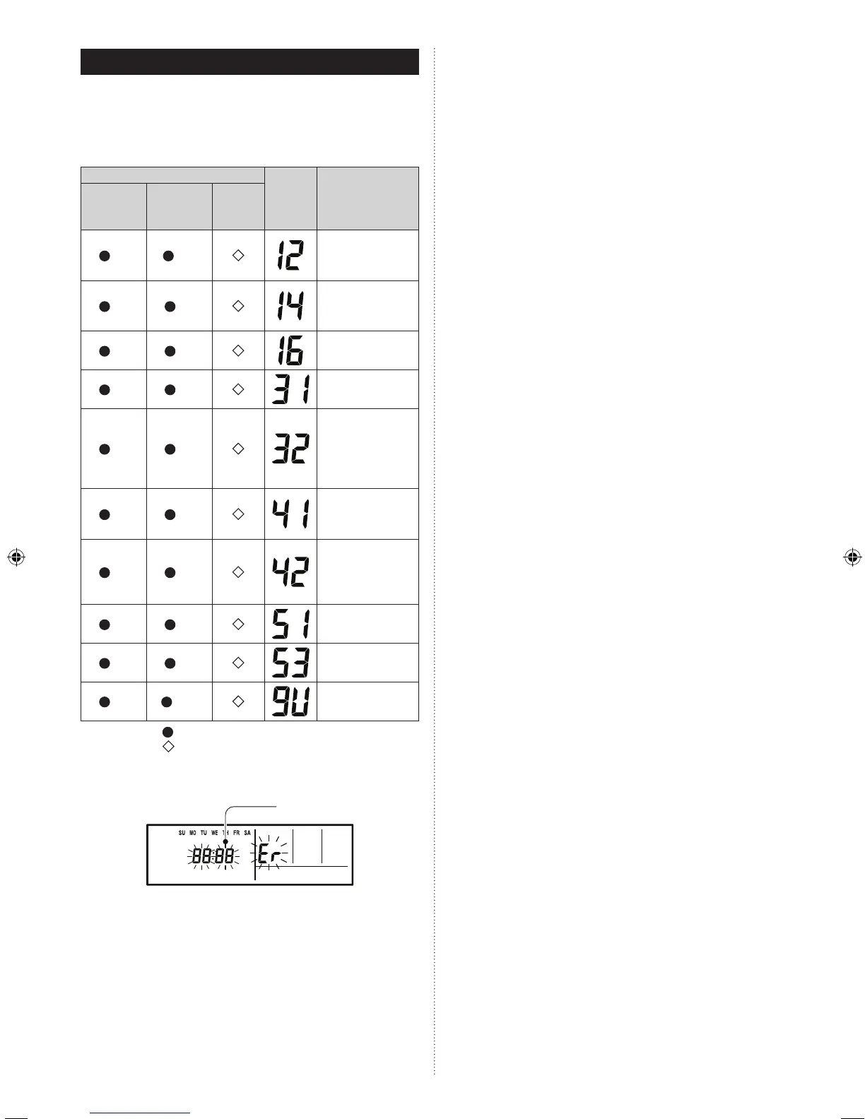 If you use a wired type remote control, error codes will appear