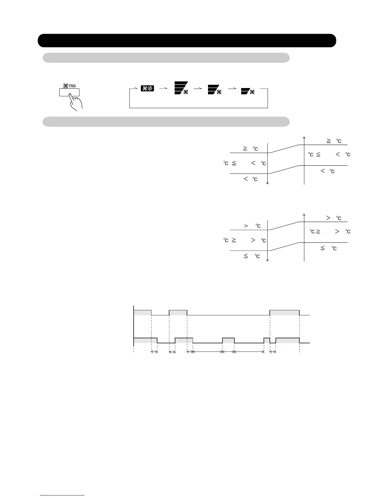 (4) When the refrigerant circulation is stopped due to a lower room temperature for more then 3 minutes, the fan will rotate