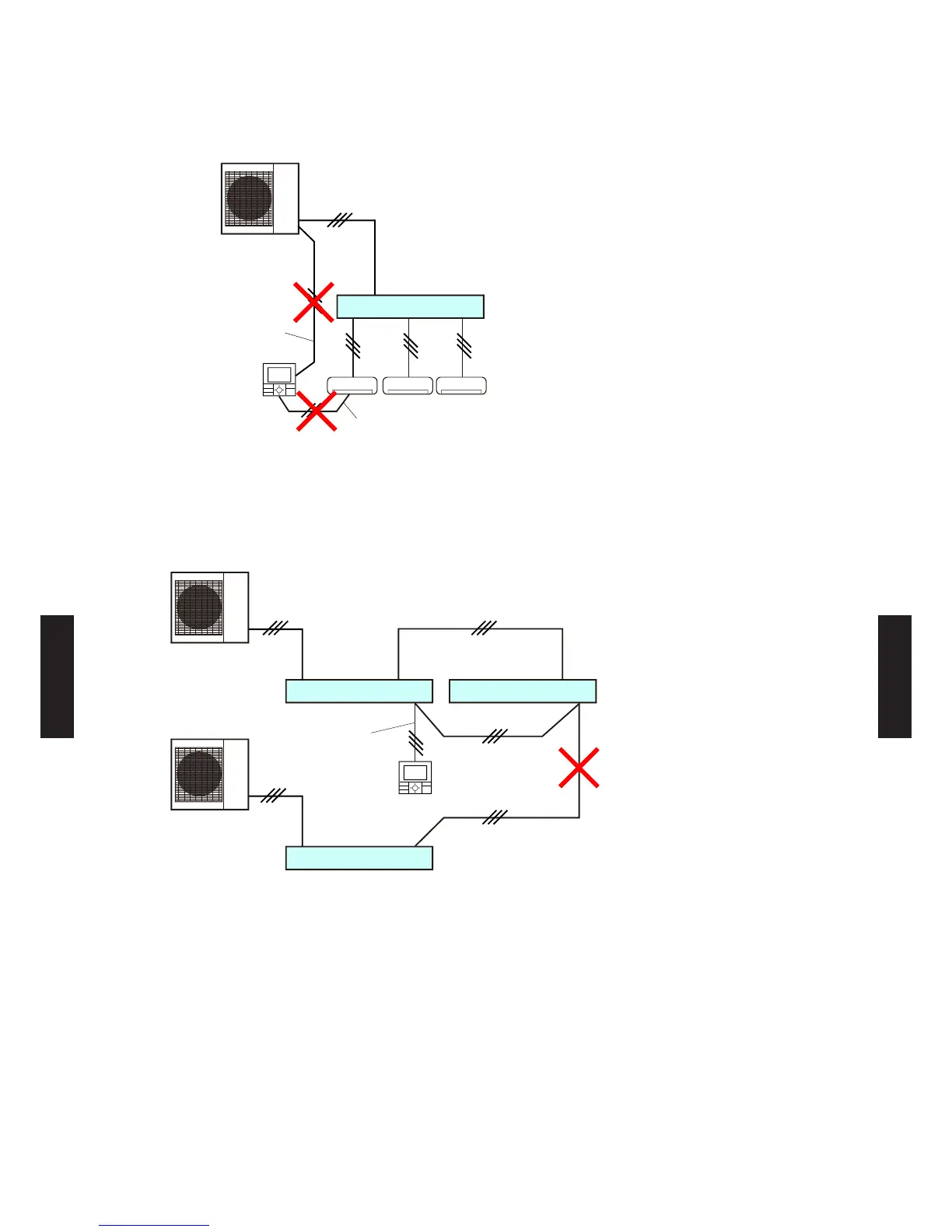 Do not connect one Central remote controller to two refrigerant systems.