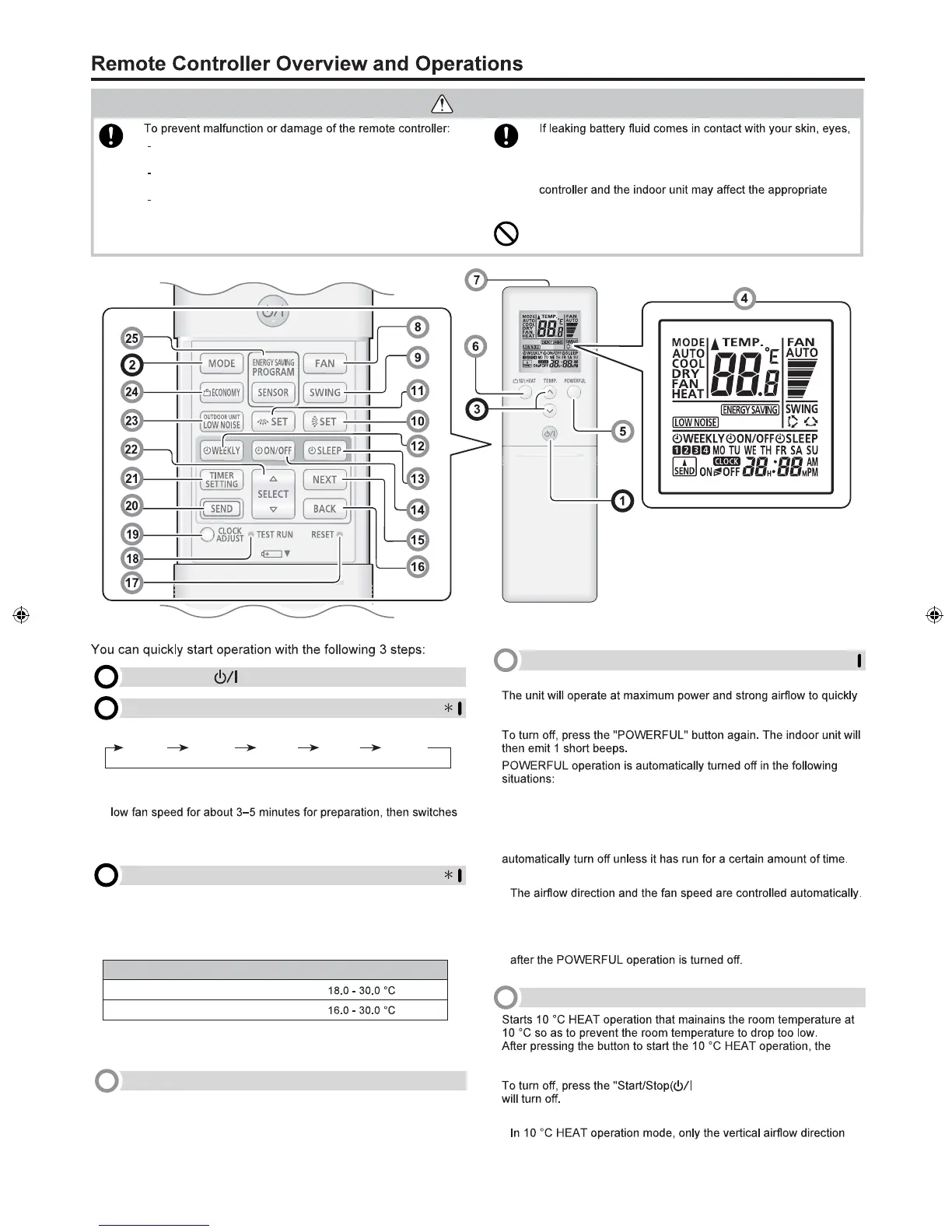 • POWERFUL operation will override the OUTDOOR UNIT LOW
