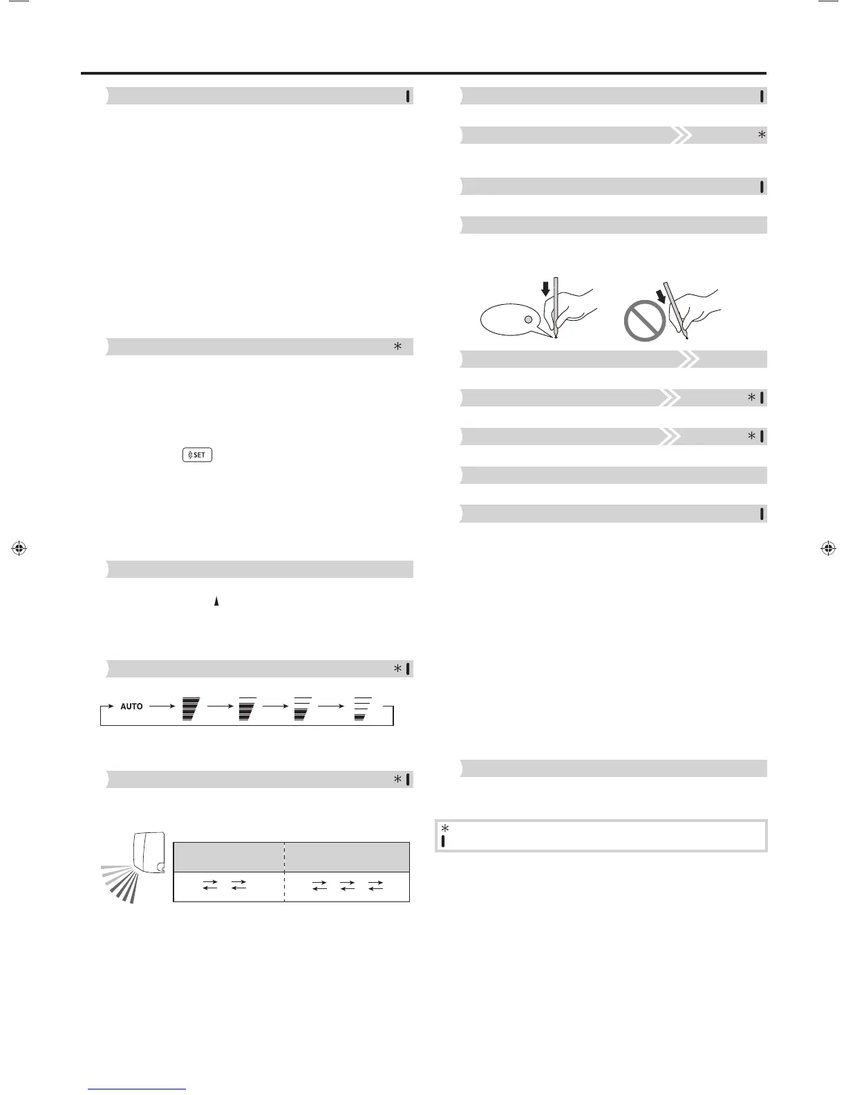 • Each time you press the button, the vertical airfl ow direction louver