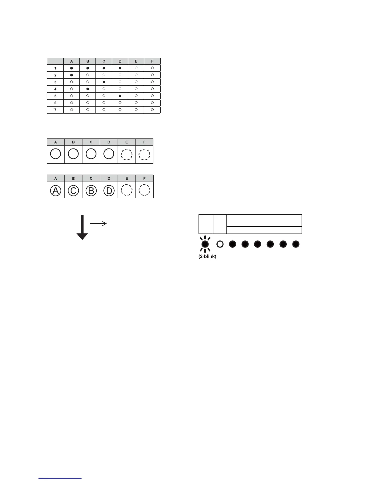 Please write the order from A to D in which the LEDs lit up inside the cicle.