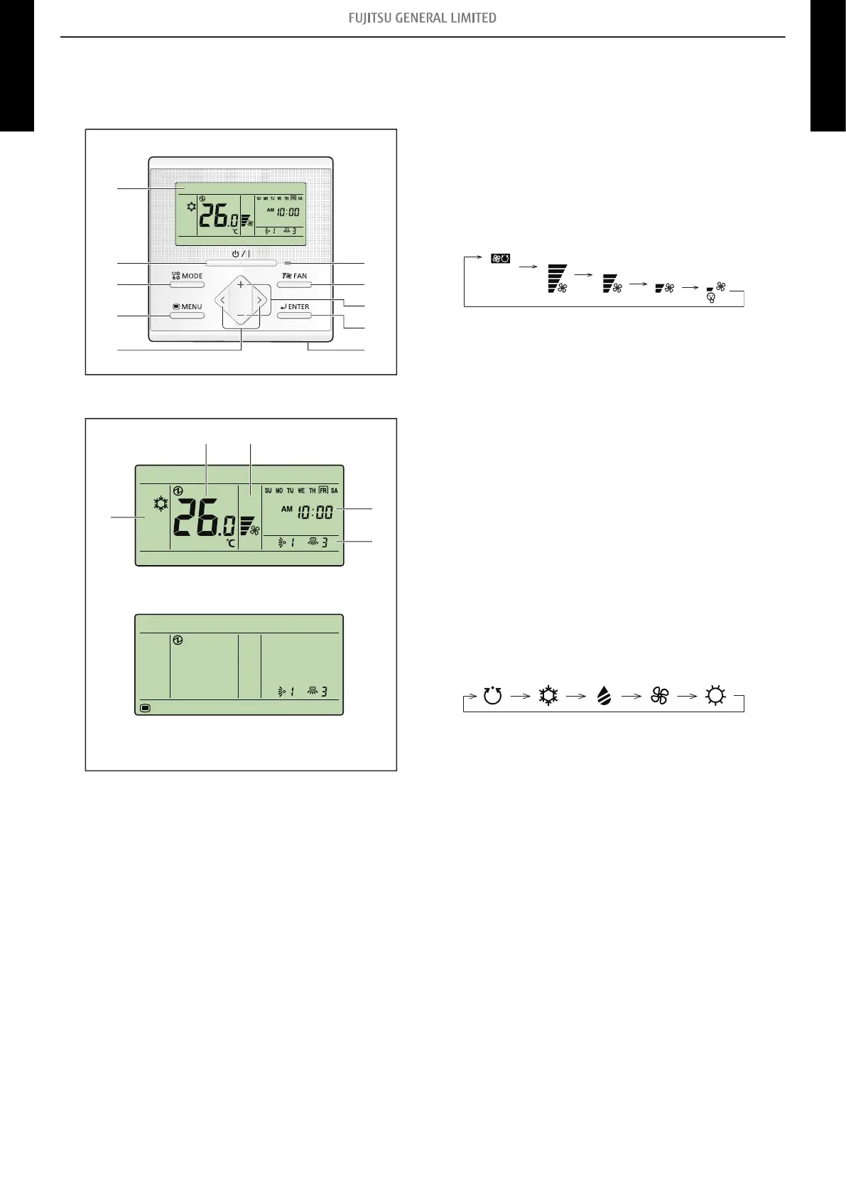 NOTE: When the operation mode is set to FAN, the tem-