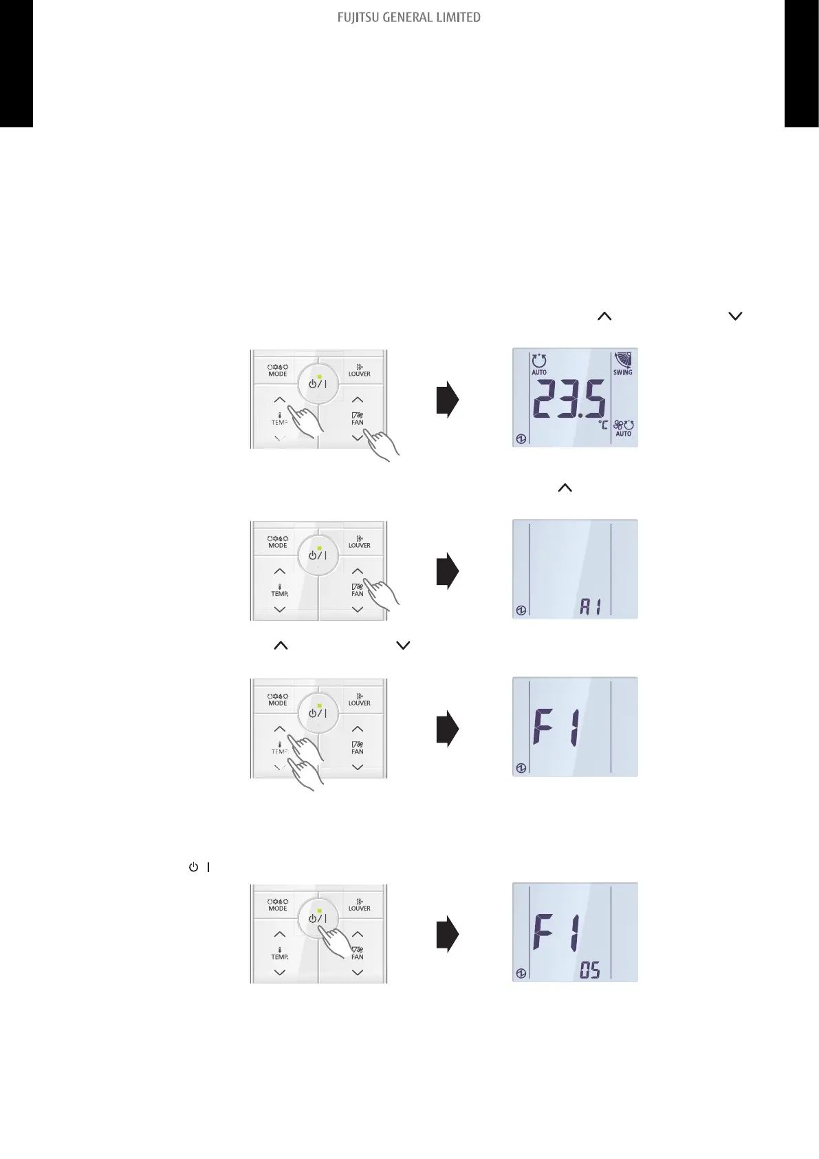 The function number and the associated setting value are displayed on the LCD of the remote con-