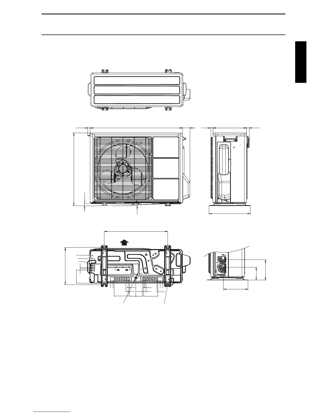 Fujitsu ASYG12LZCA - Dimensions; Models: AOYG09 LZCAN, AOYG12 LZCAN, and AOYG14 LZCAN