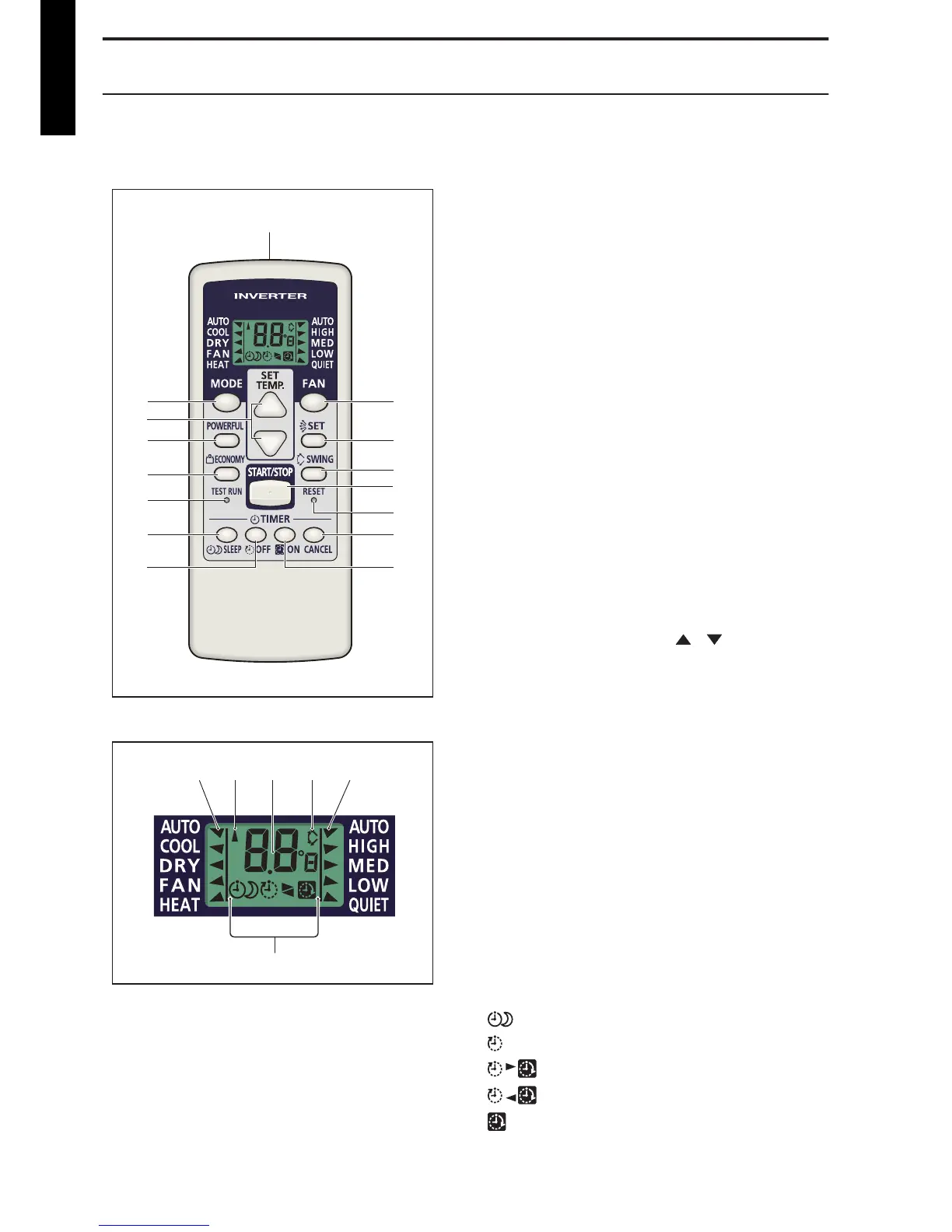• Switches operation mode (AUTO, COOL, DRY, FAN, and