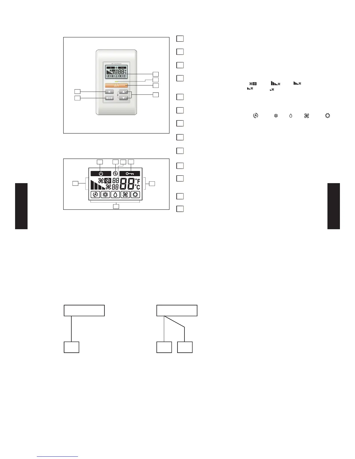 Selects operating mode (AUTO , COOL , DRY ,FAN , HEAT