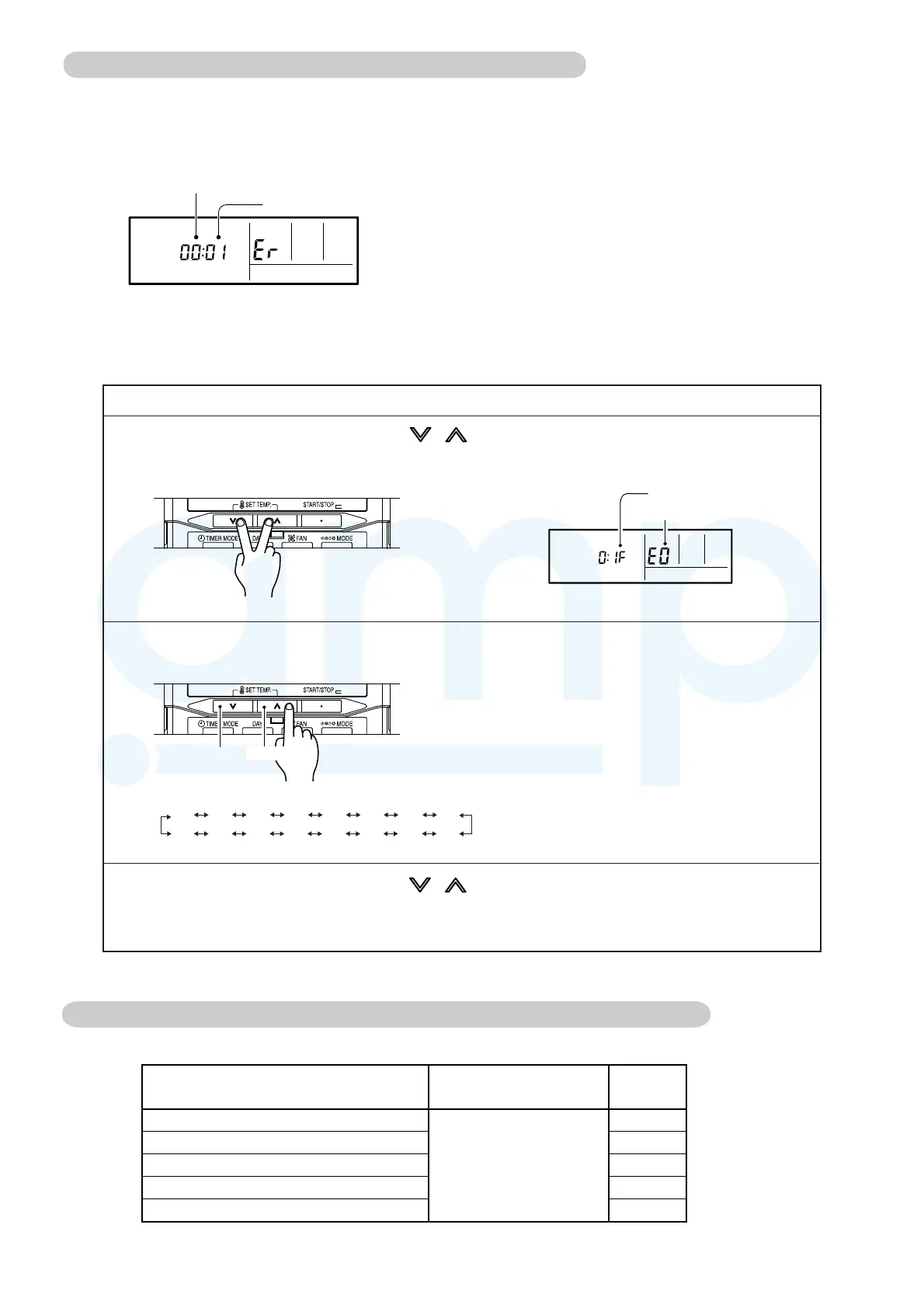 Up to 16 memorized error codes may be displayed for the indoor unit connected to the remote controller.