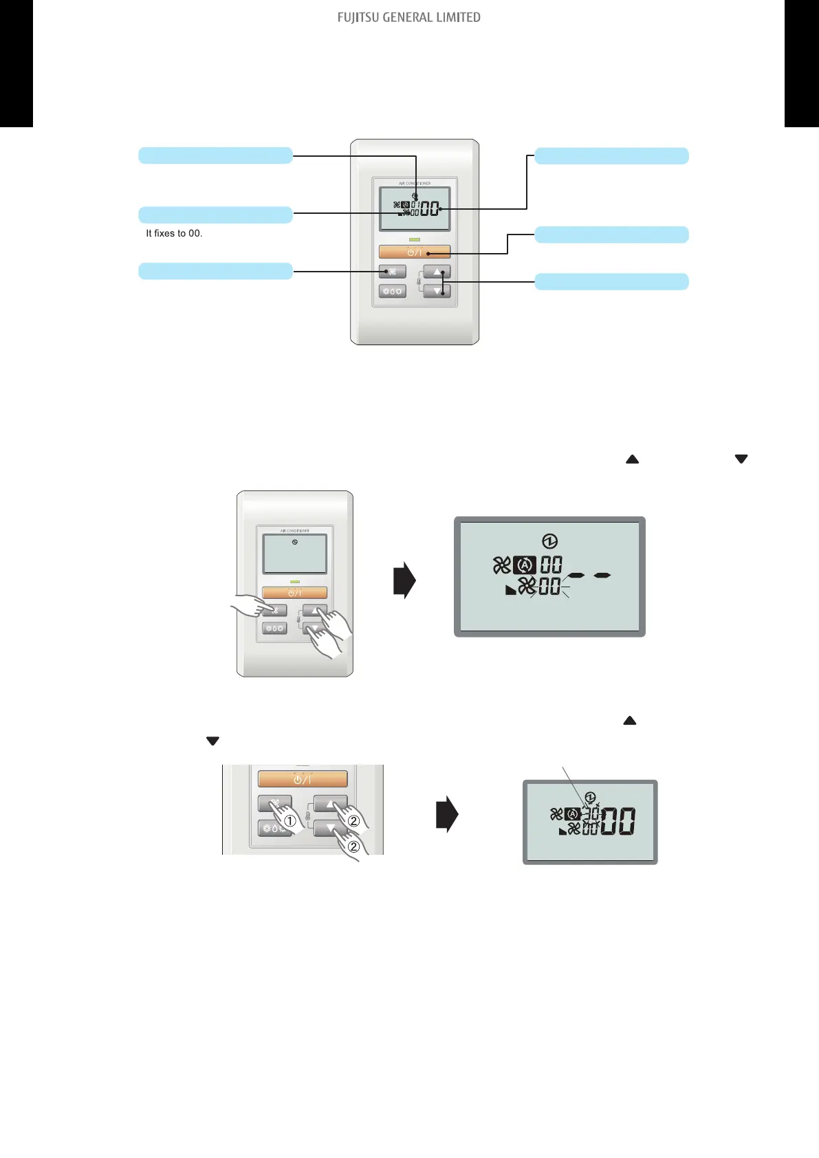 To enter the function setting mode, hold down the 3 buttons of SET TEMP.