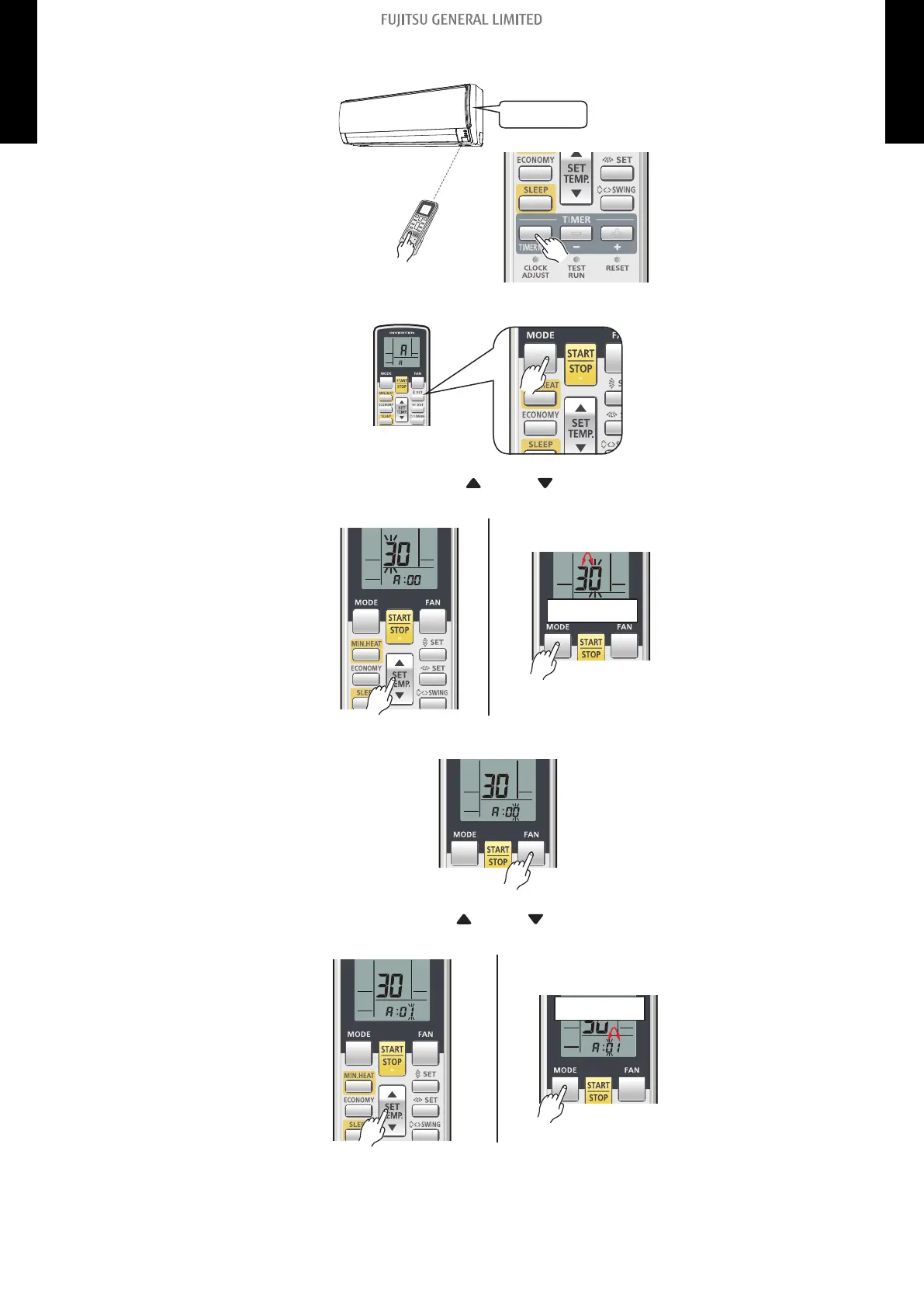 7. Proceed to number setting by pressing the FAN button.